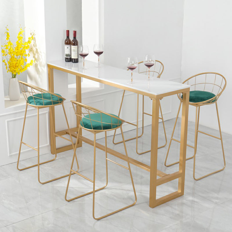 Stone Bar Dining Table Glam Style Rectangle Bar Table with Trestle for Dining Room