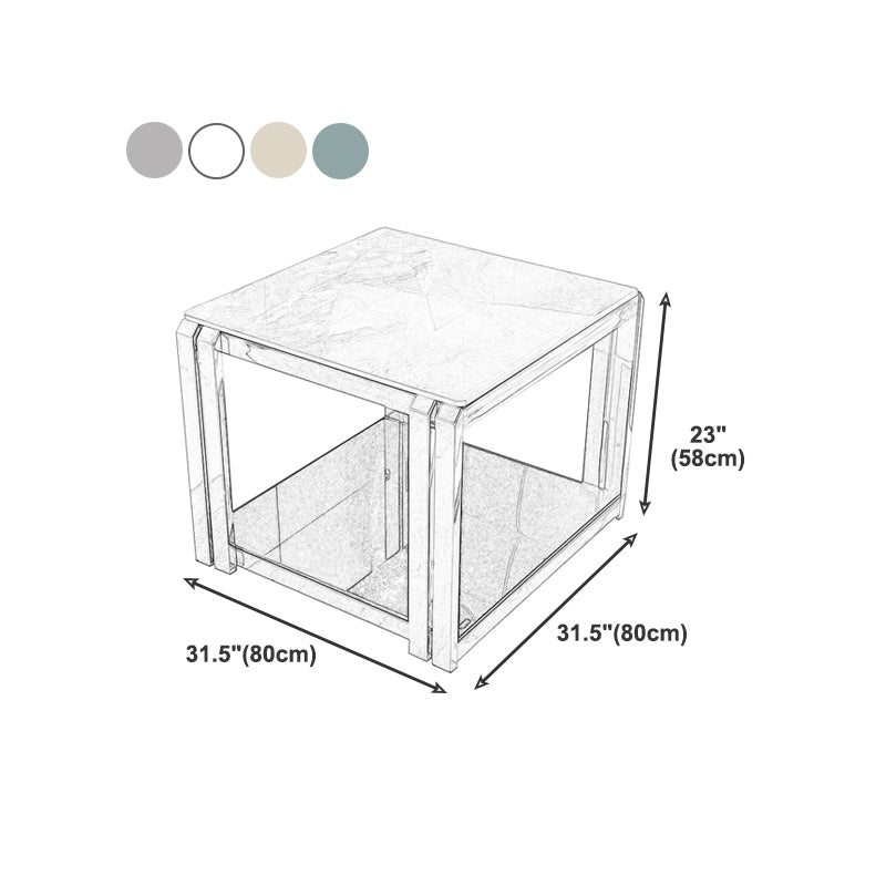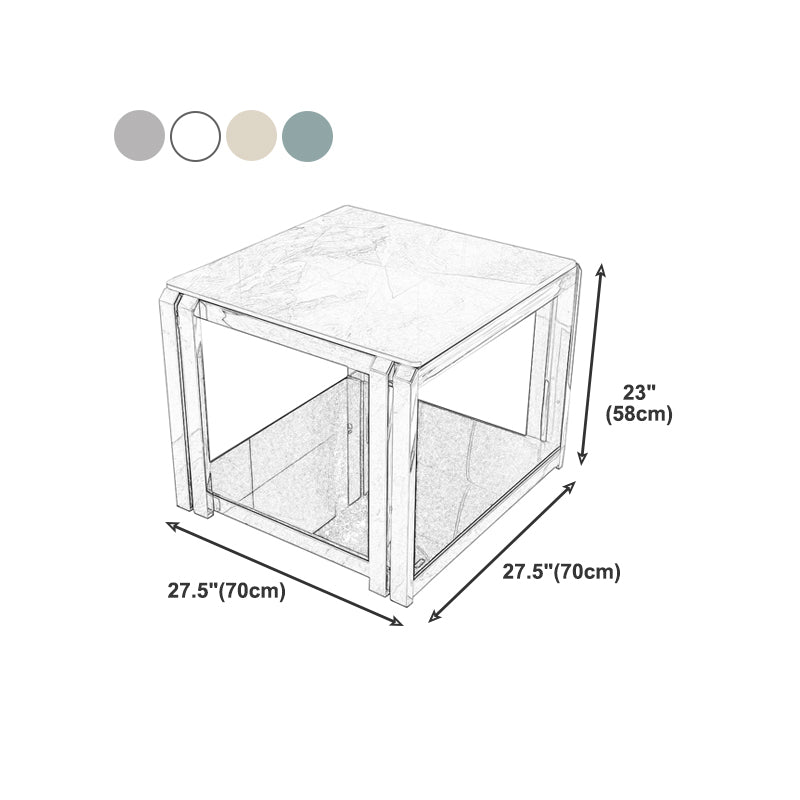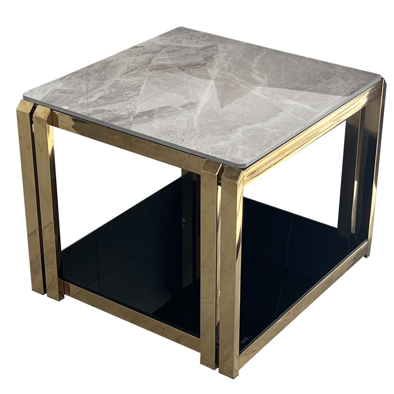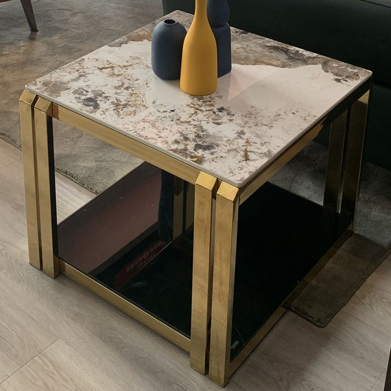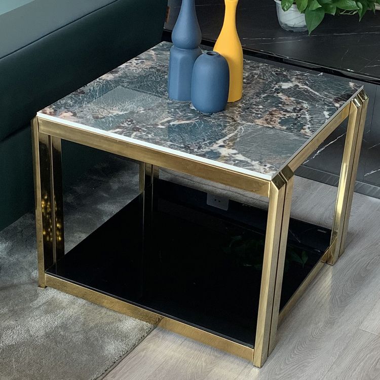 Stone Top End Table with Shelves Glam Frame Sofa Side Table for Living Room