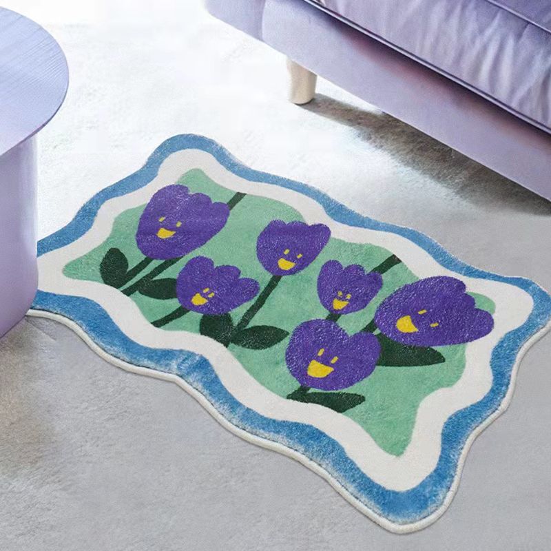 Tapis à tendance verte Polyester tapis lavable moderne pour le salon