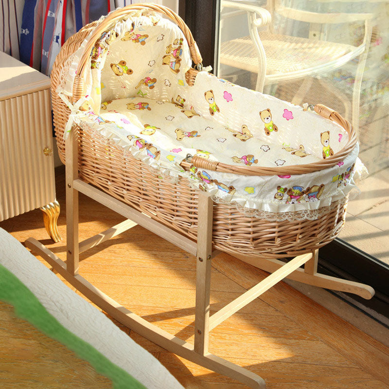 Traditional Portable Moses Basket Oval Cradle with Playpen for Newborn