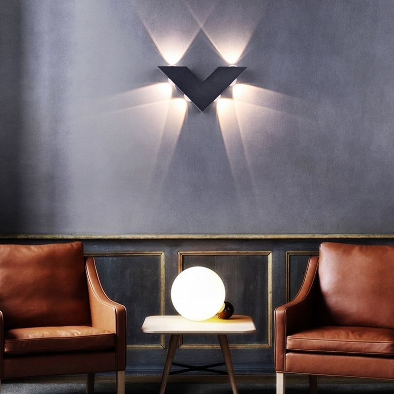 V-Shaped Metal Wall Lighting Modern Style 6 Lights Wall Mounted Lighting in Black