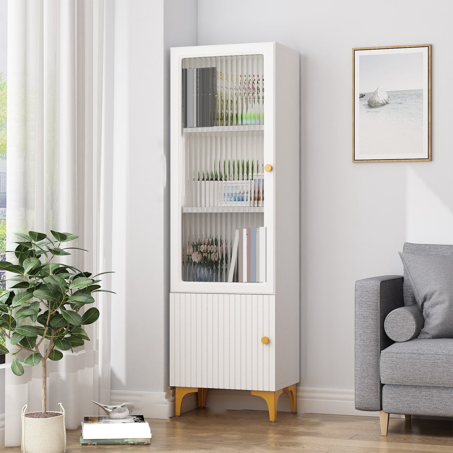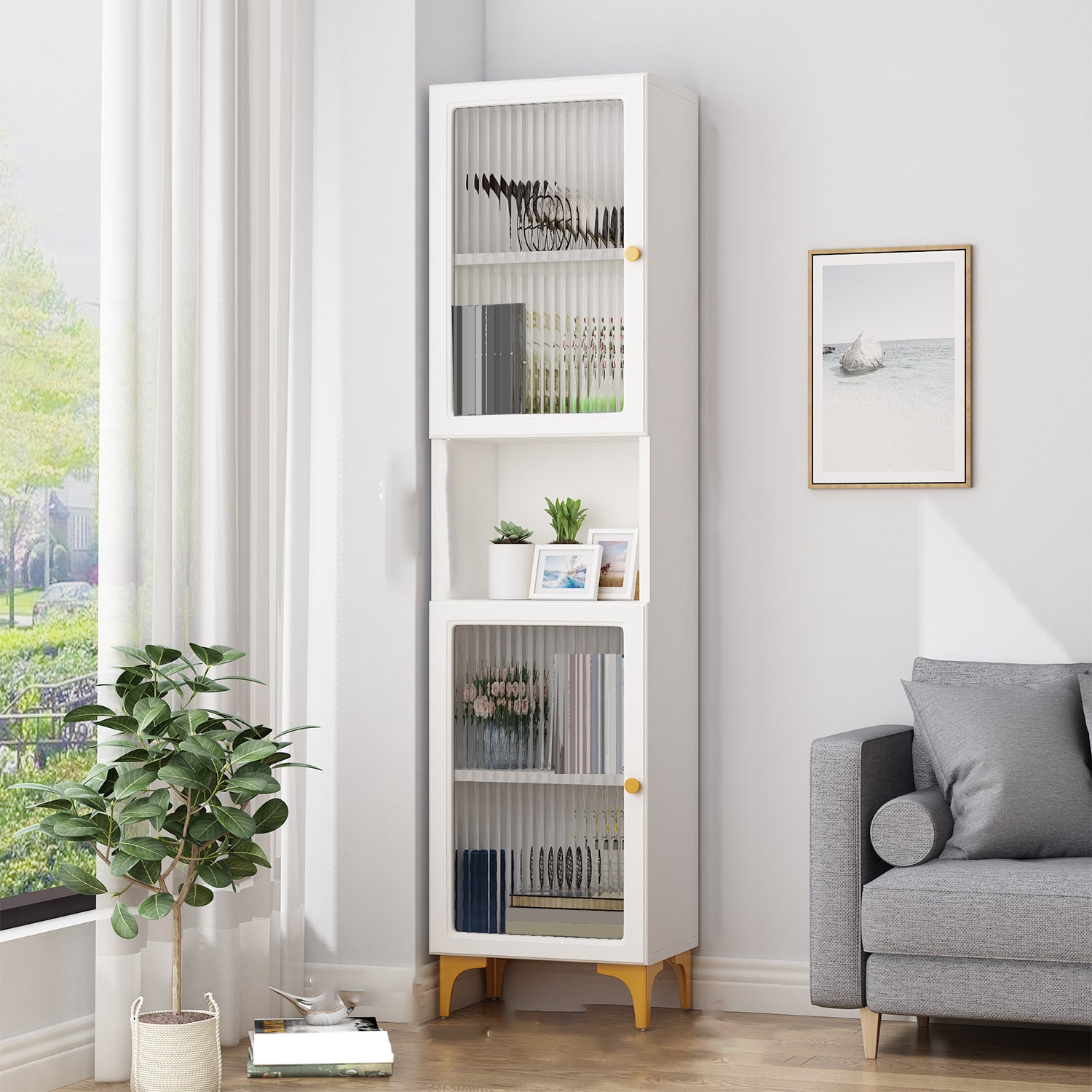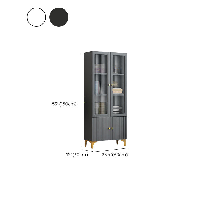 White and Black Accent Cabinet Glass Paned Storage Cabinet with Doors