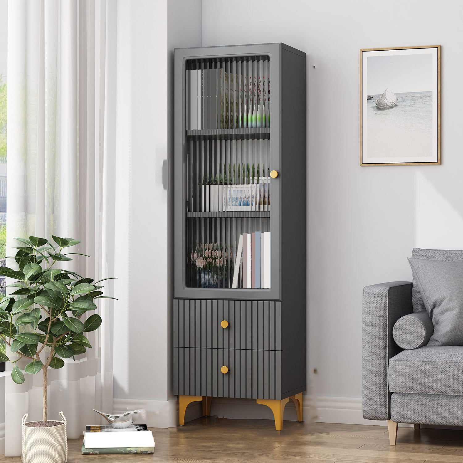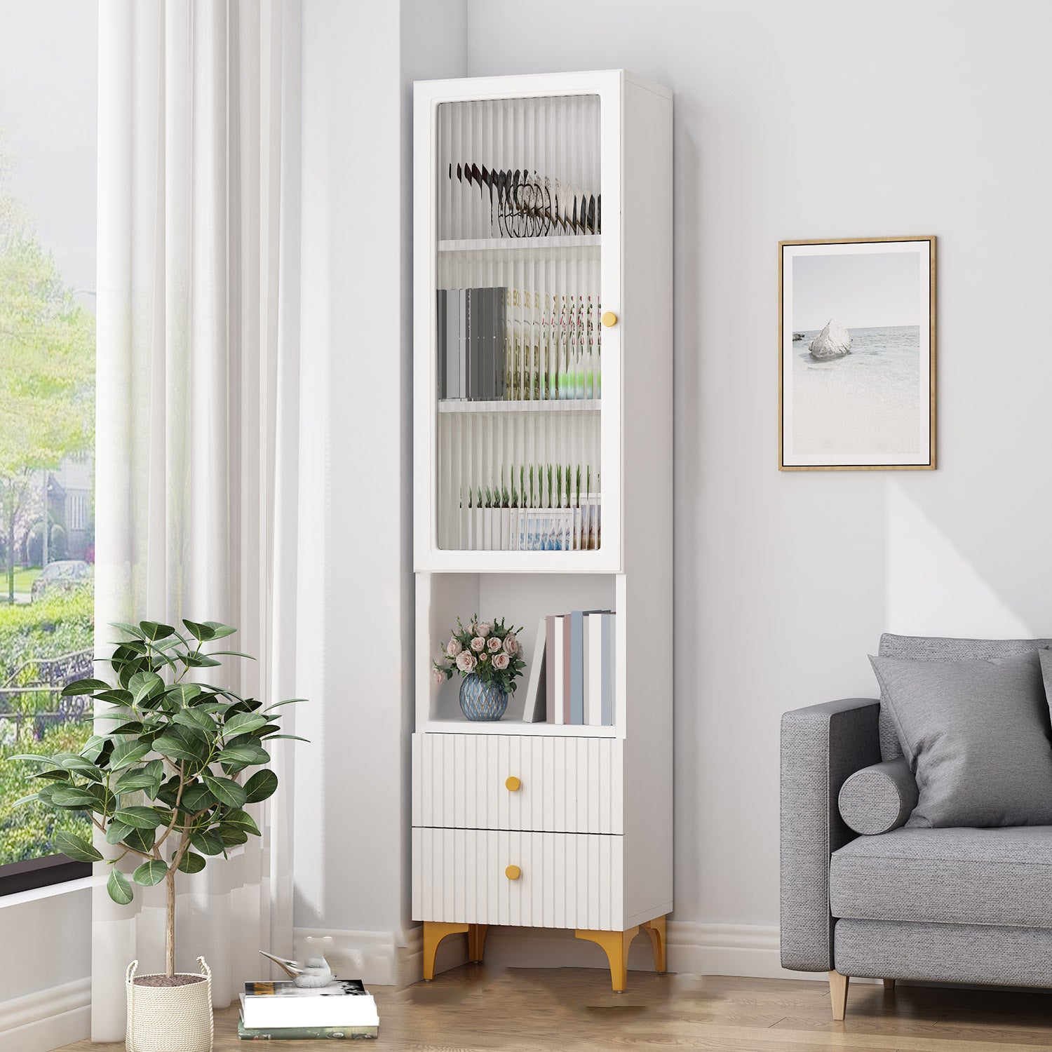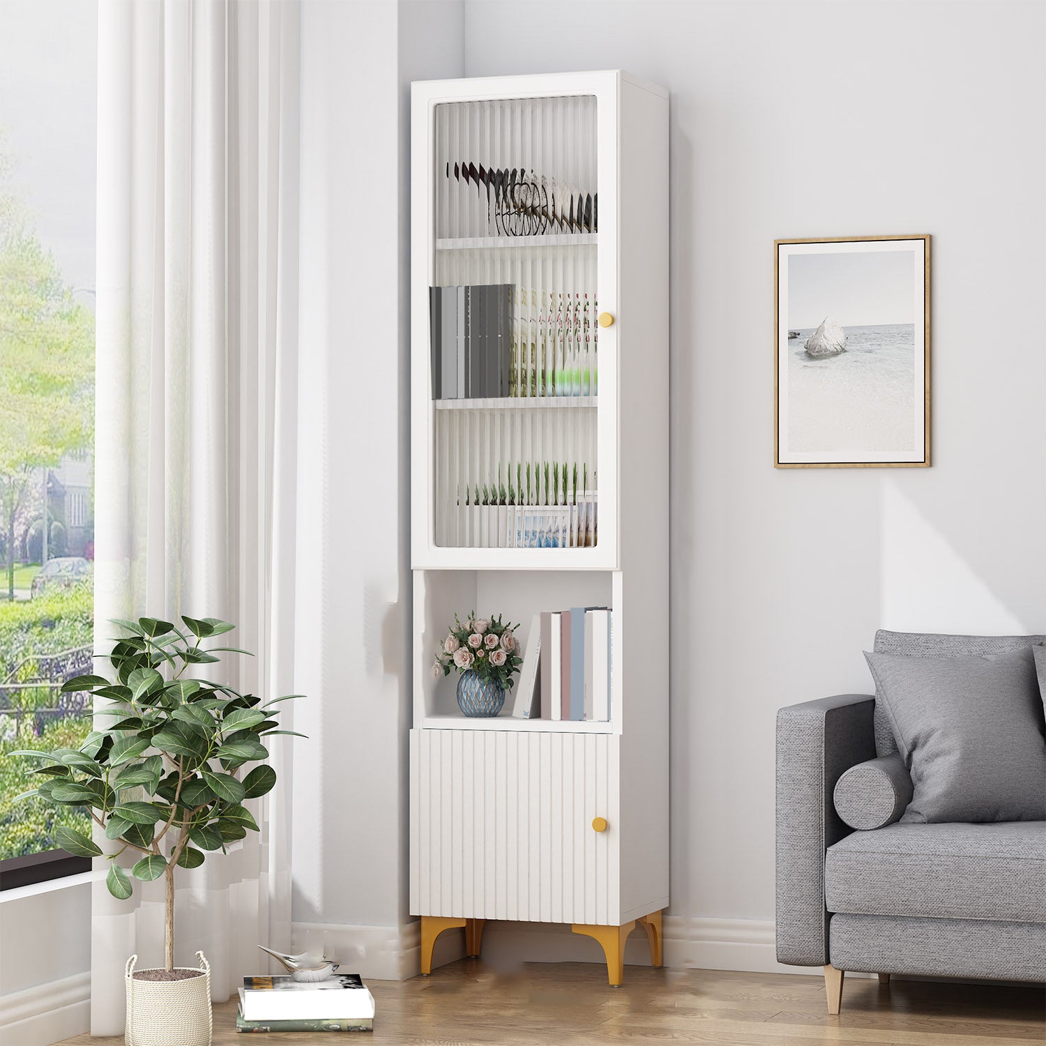 White and Black Accent Cabinet Glass Paned Storage Cabinet with Doors