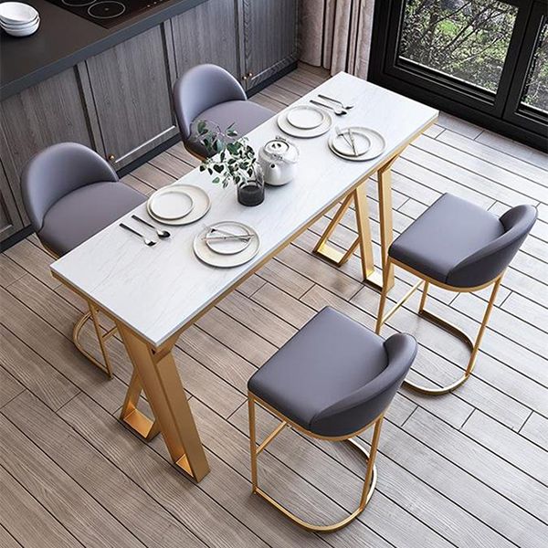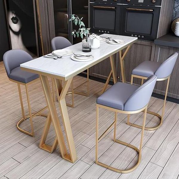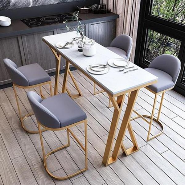 White and Gold Bistro Bar Desk Contemporary Stone Top Bistro Bar Table