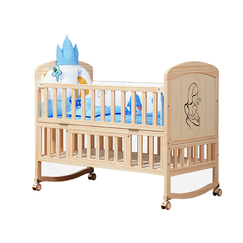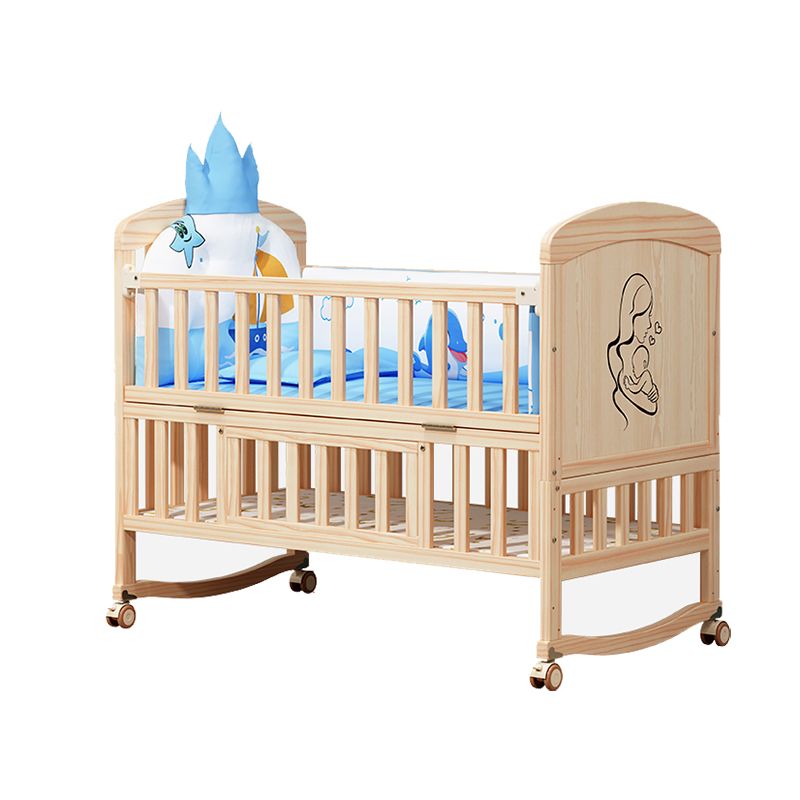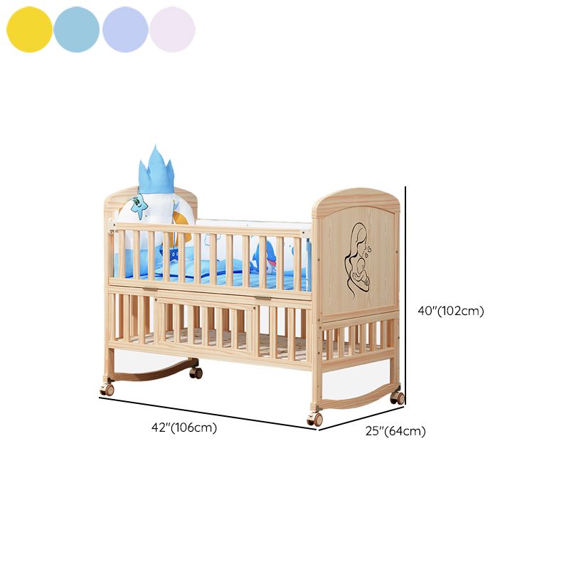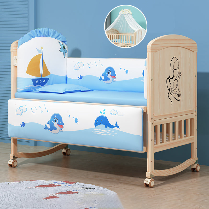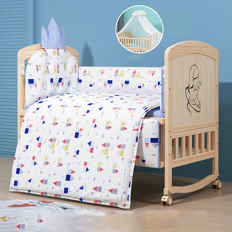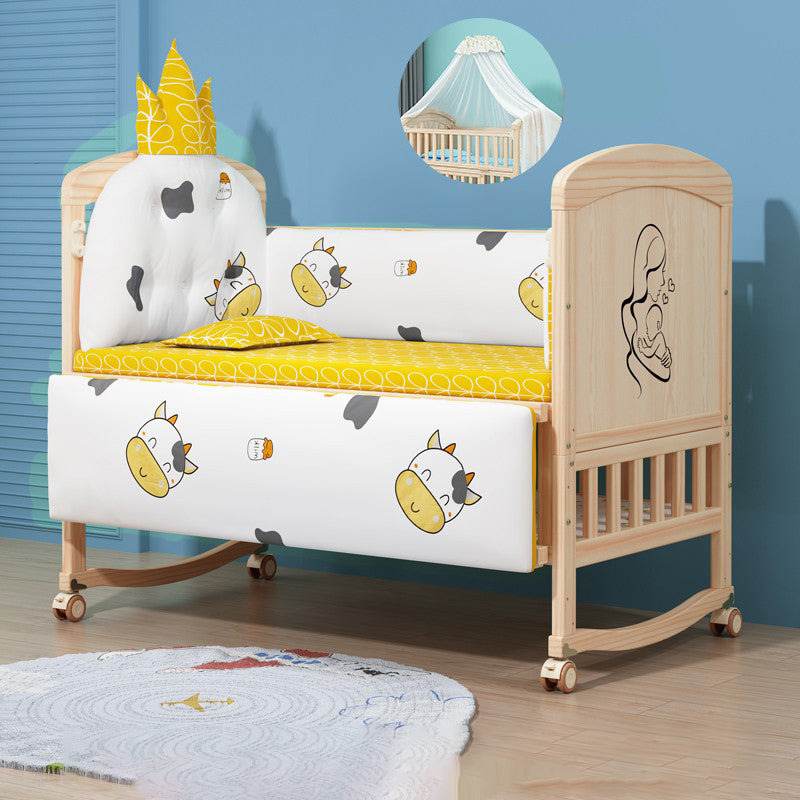 Wooden Scandinavian Nursery Crib Animal Print Color Matching Crib