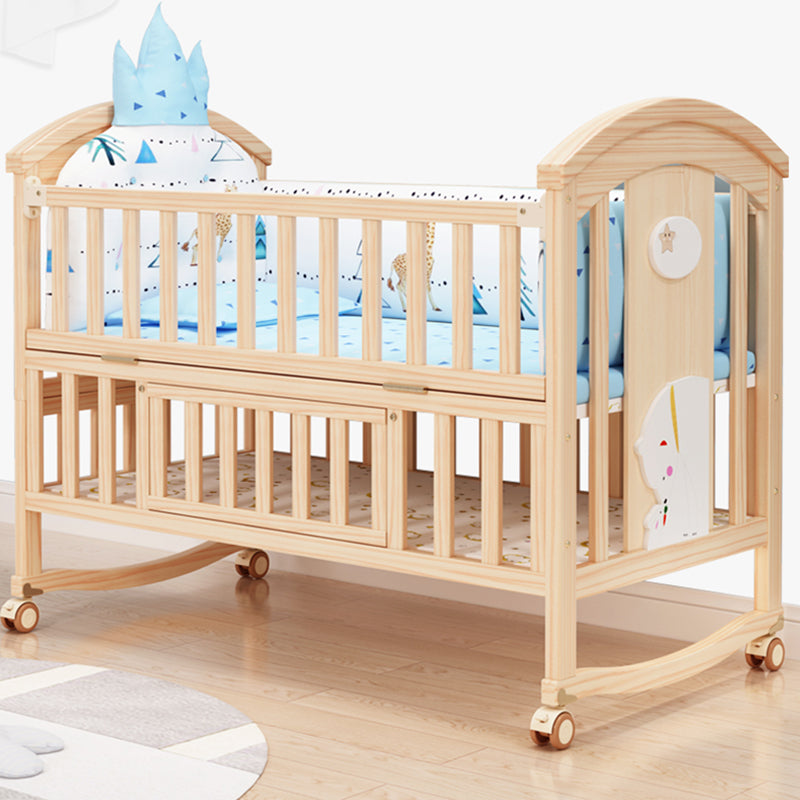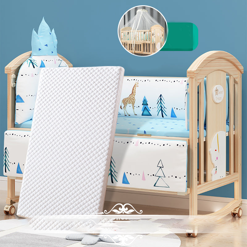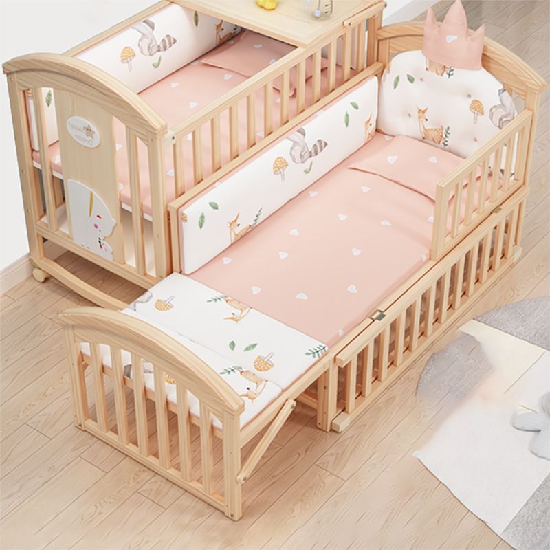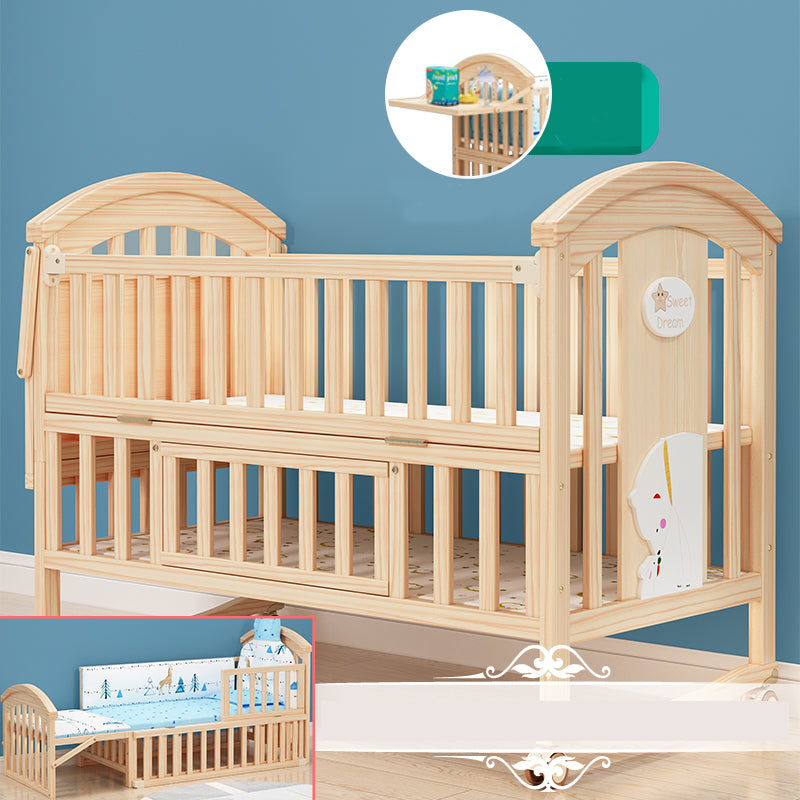 Farmhouse / Country Wood Washed Natural with Adjustable Height Baby Crib