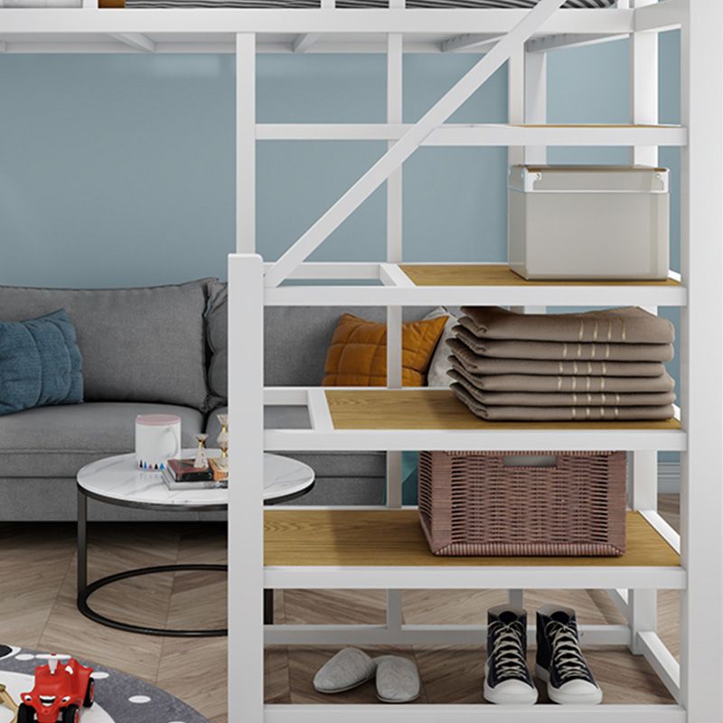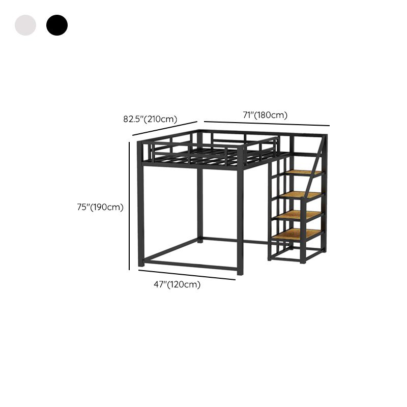 Industrial Loft Bed with Shelves and Guardrail in Iron Black/White Bed