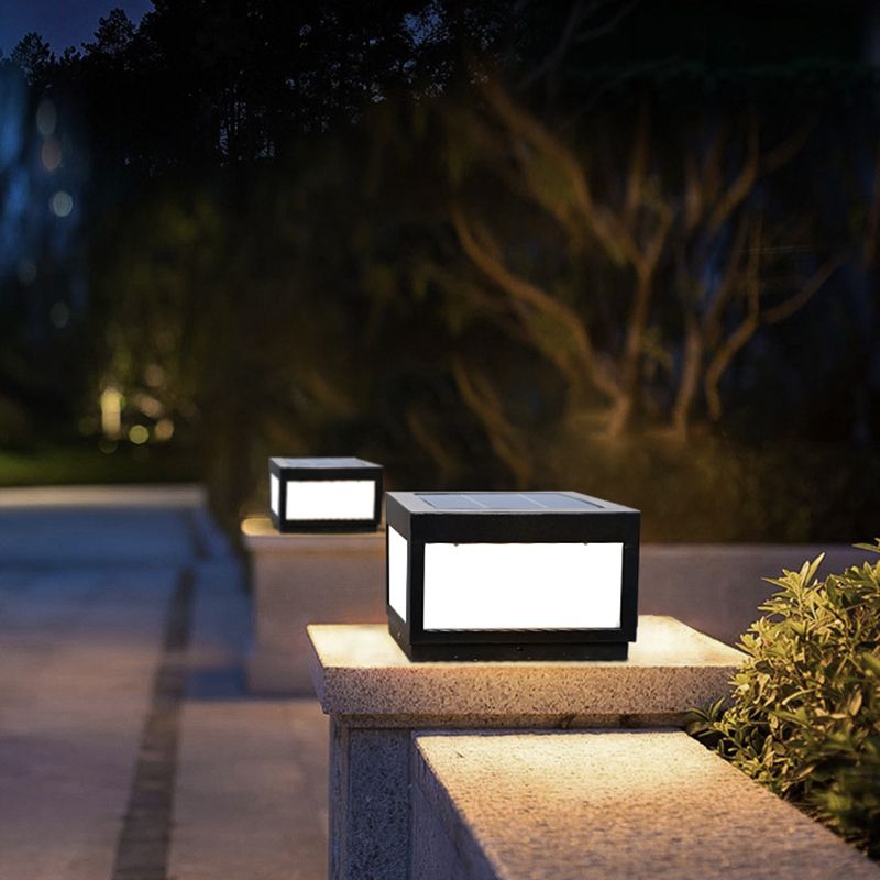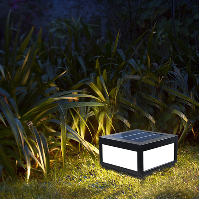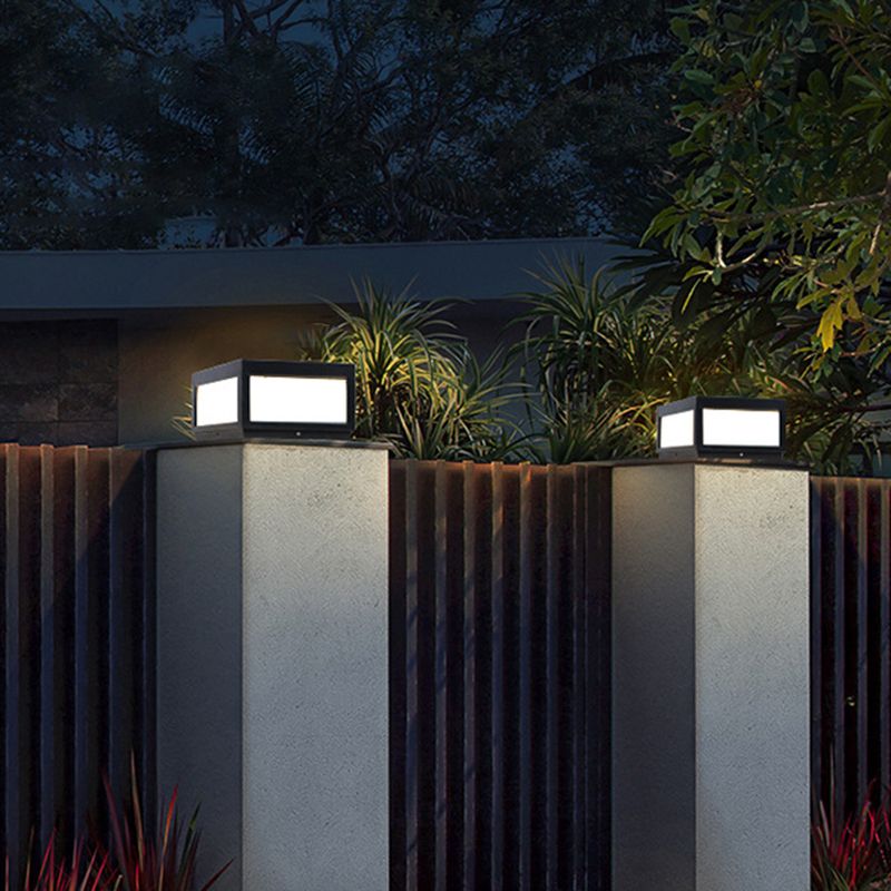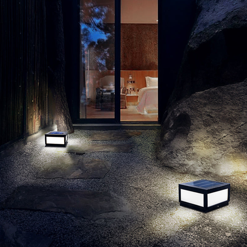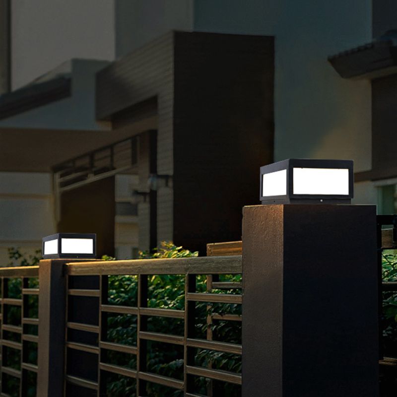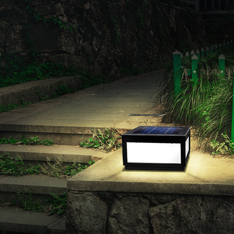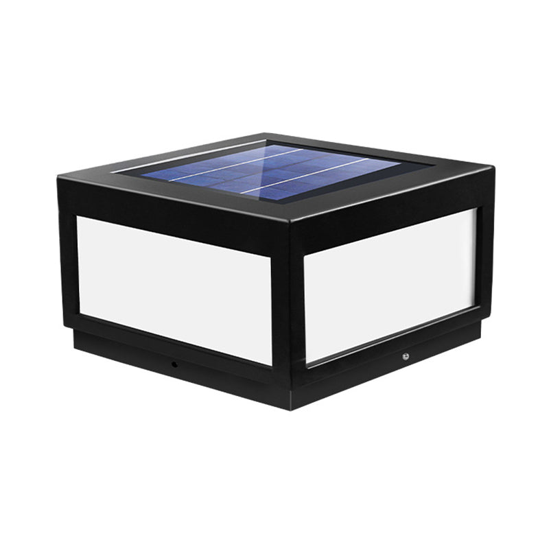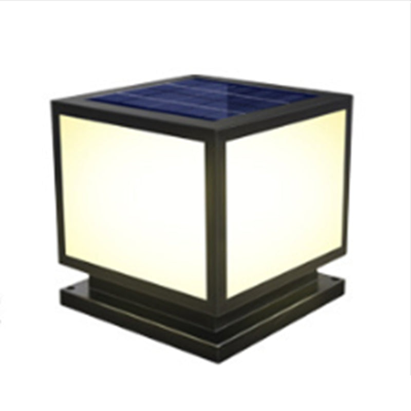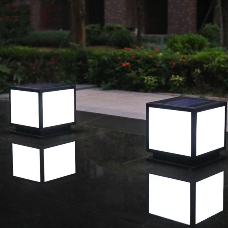 Metal Geometric Shape Outdoor Lights Modern Style 1 Light Solar Pillar Lamp in Black