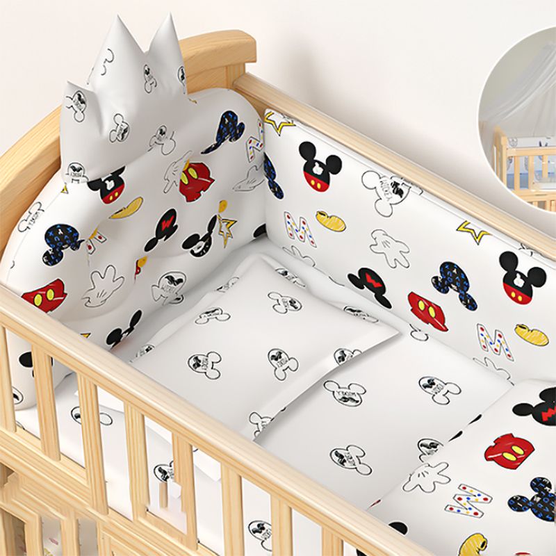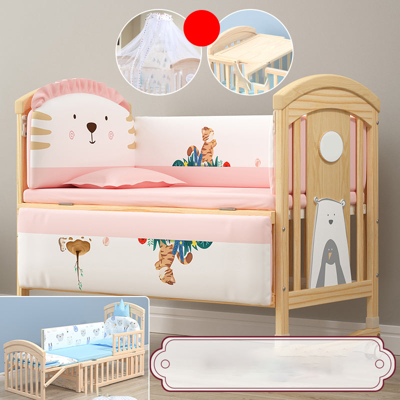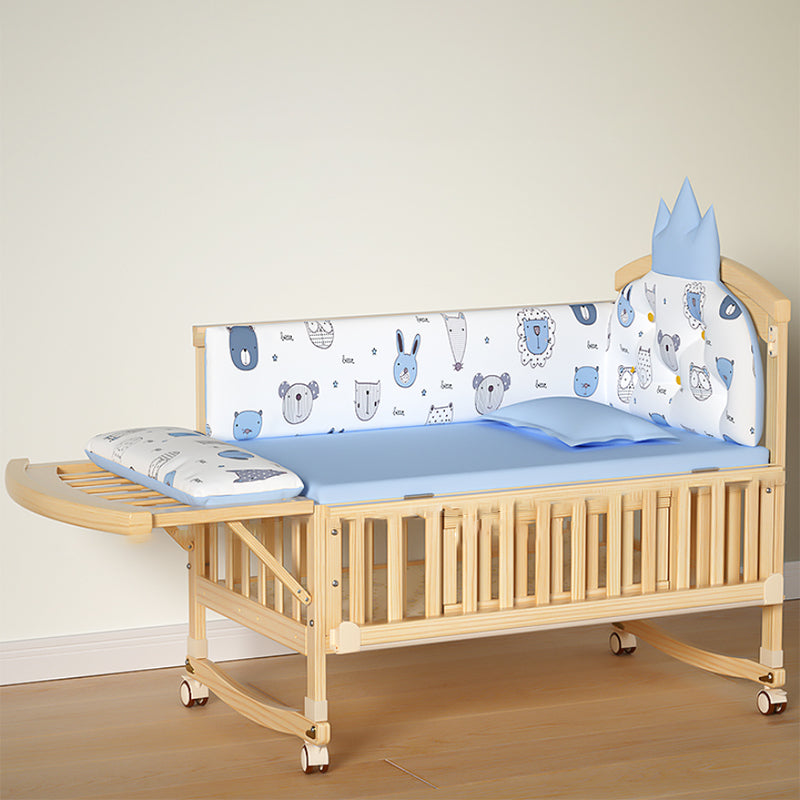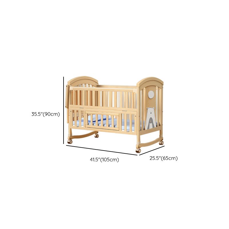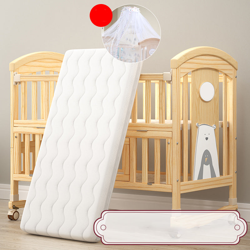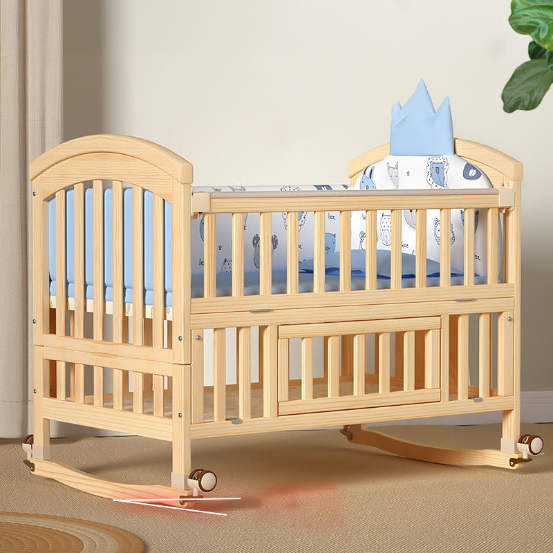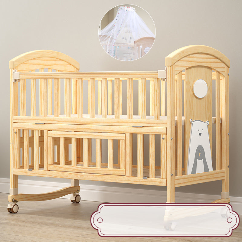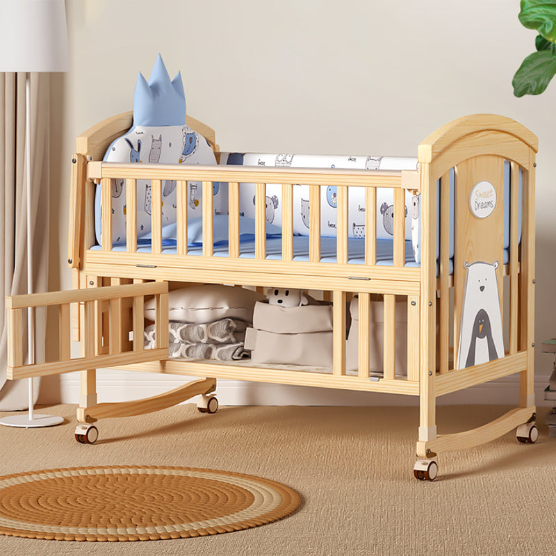 Modern Baby Crib with Guardrail with Casters/Wheels Washed Natural Nursery Bed