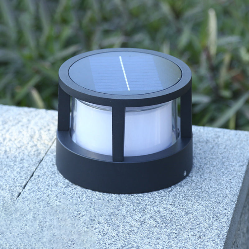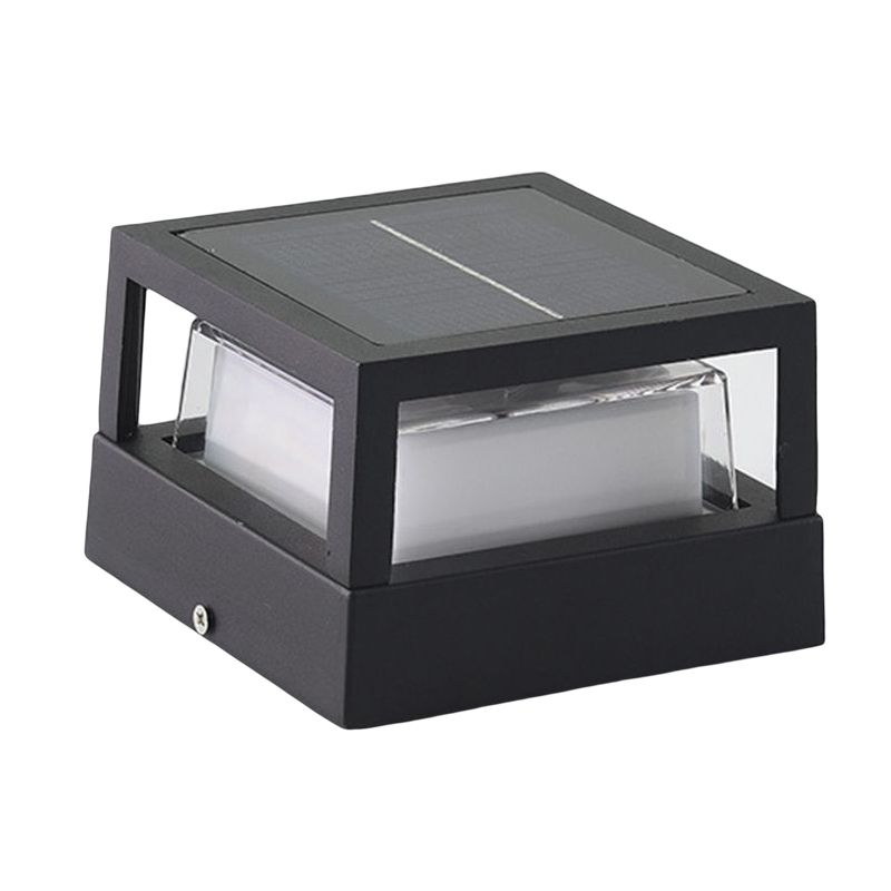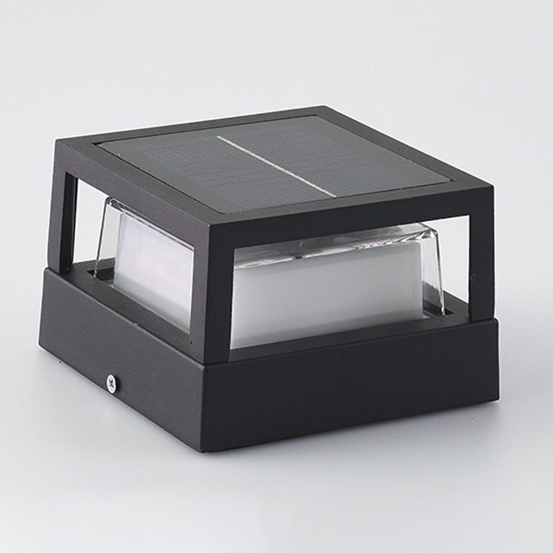 Modern Simple Metal Outdoor Light Geometry Shape Solar Energy Pillar Lamp for Outdoor