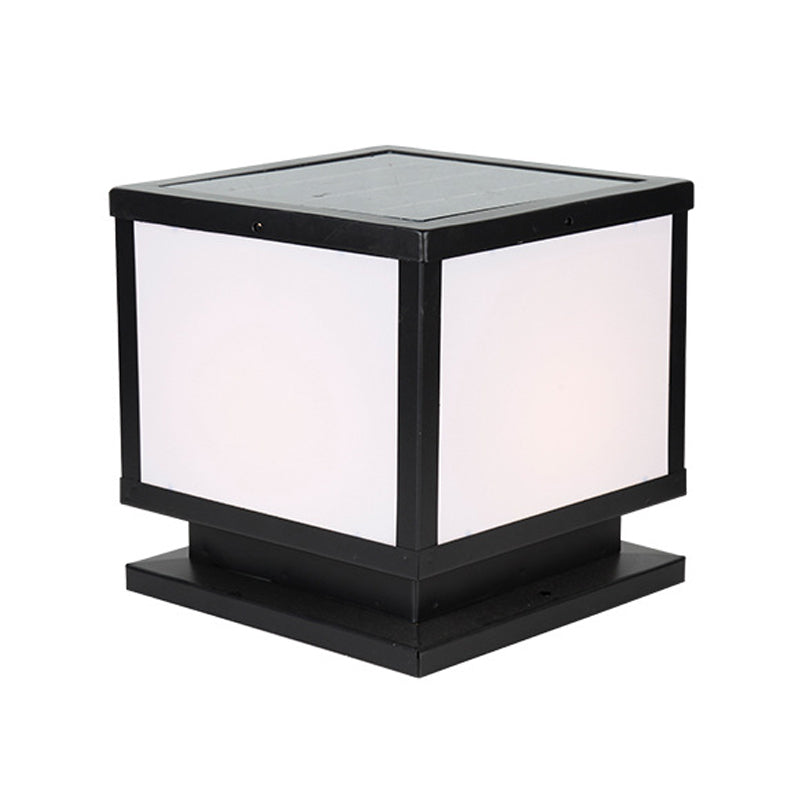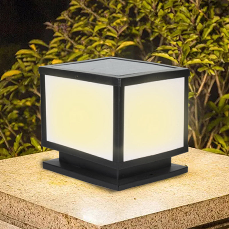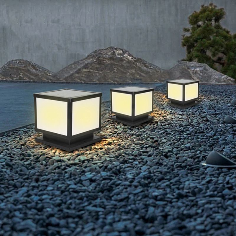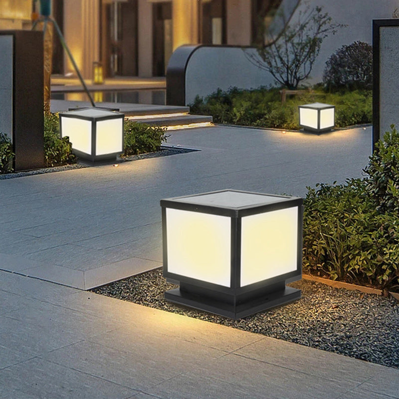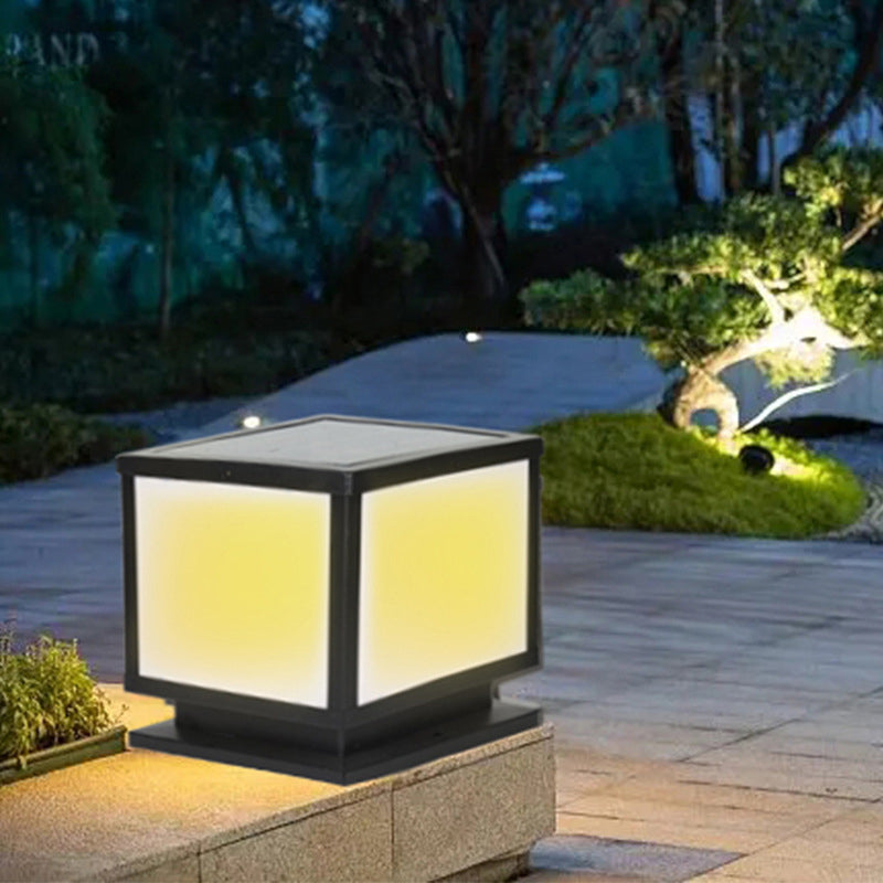 Modern Simple Metal Pillar Lamp Cube Shape Solar Energy Pillar Light for Outdoor