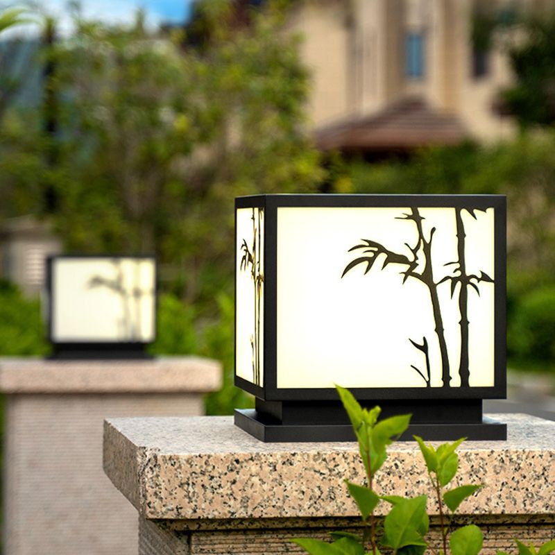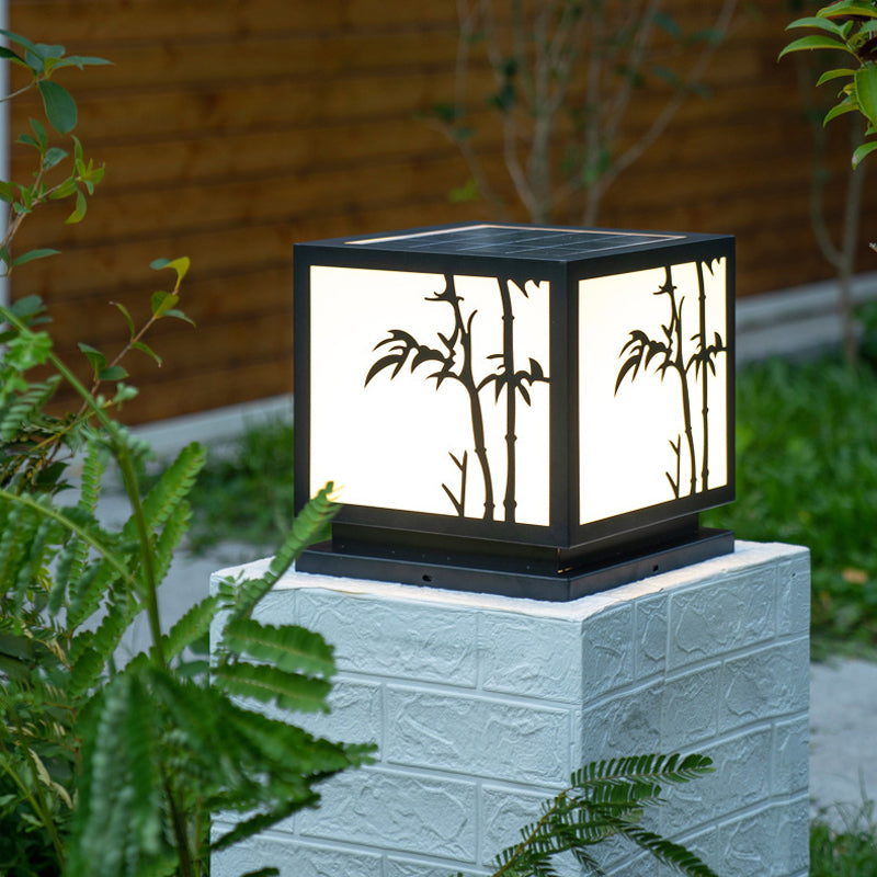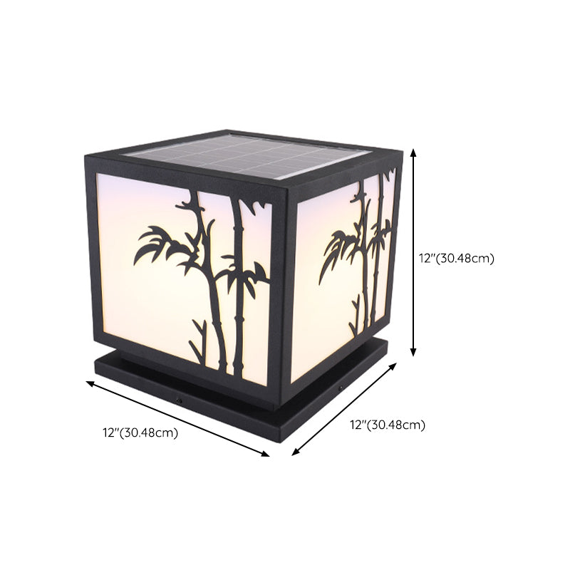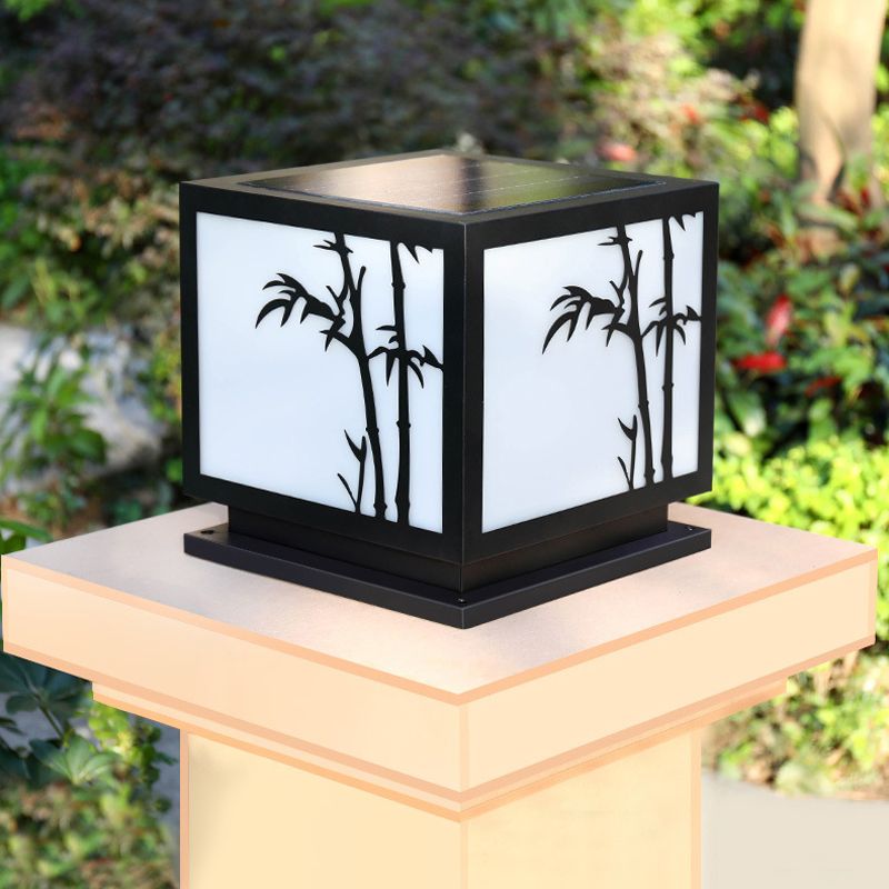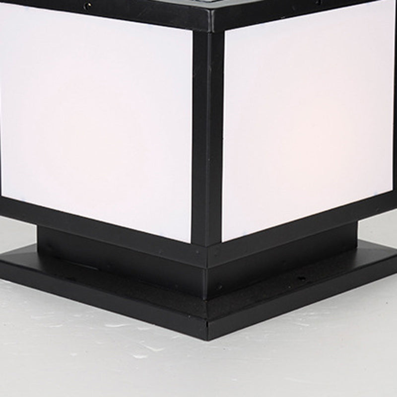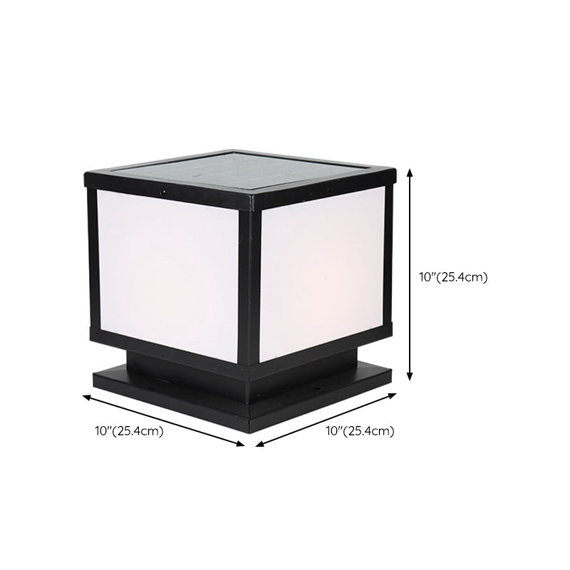 Modern Simple Metal Pillar Lamp Cube Shape Solar Energy Pillar Light for Outdoor