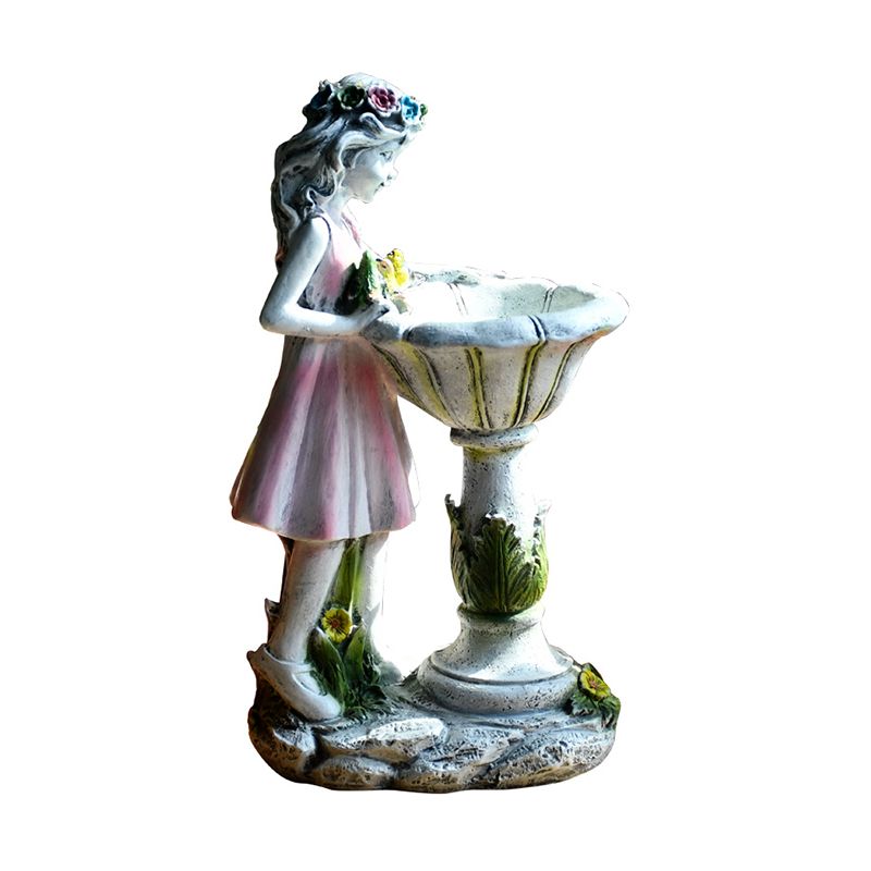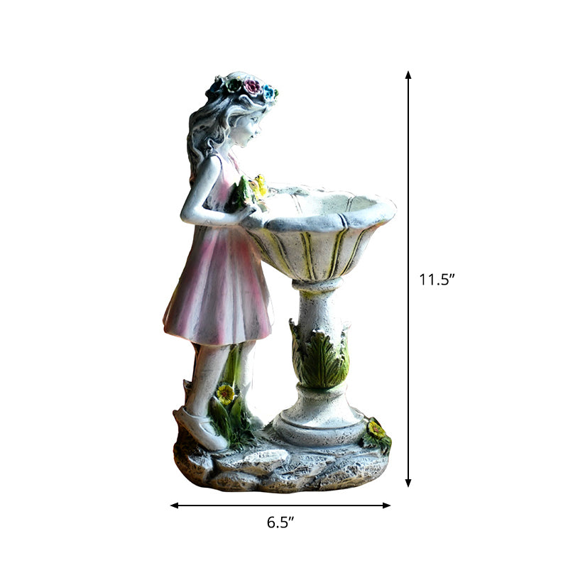 Pink Fairy Girl Solar Garden Light Modern Resin LED Ground Lamp with Font Shade for Yard