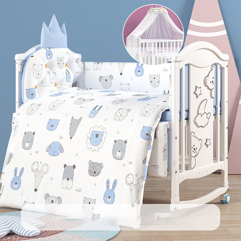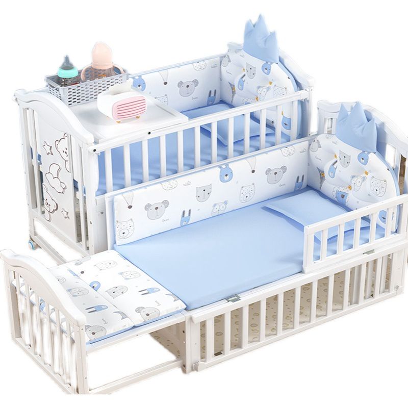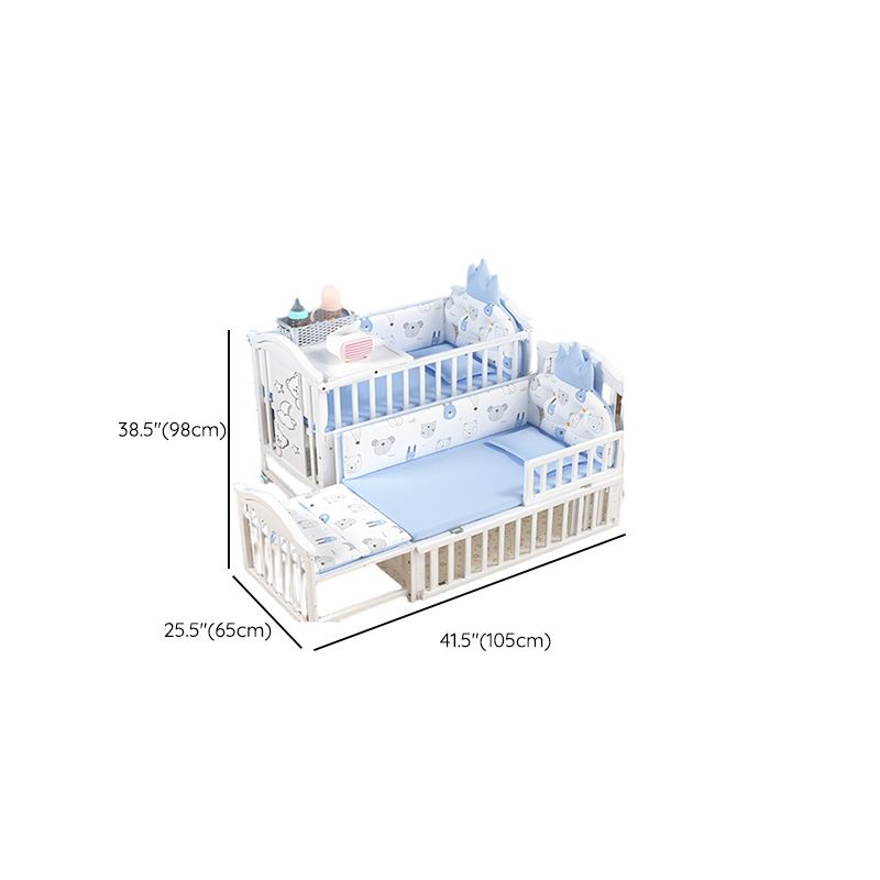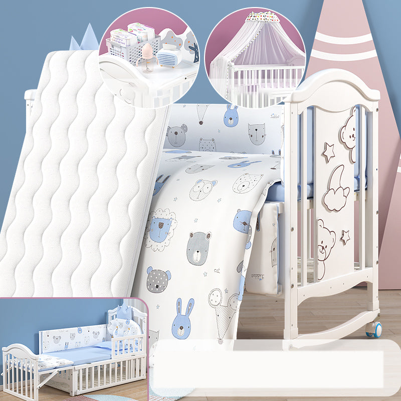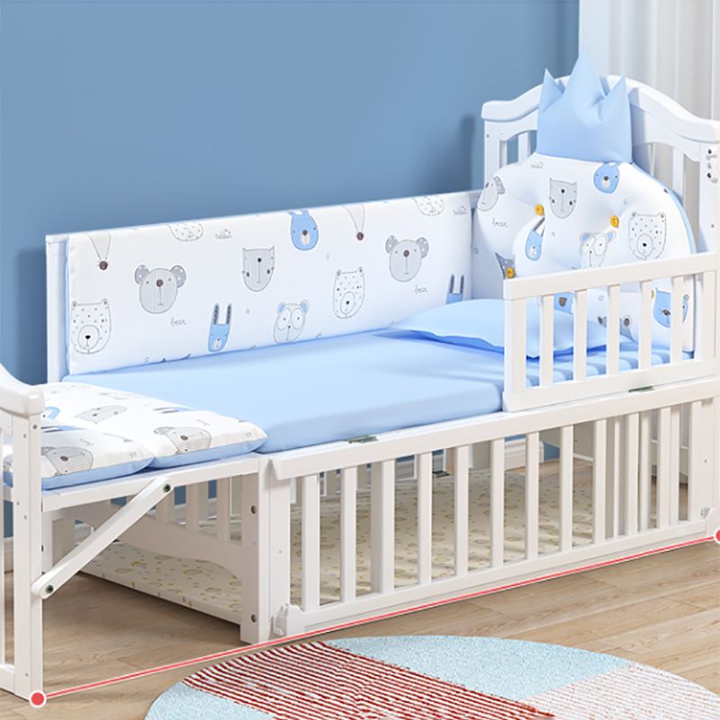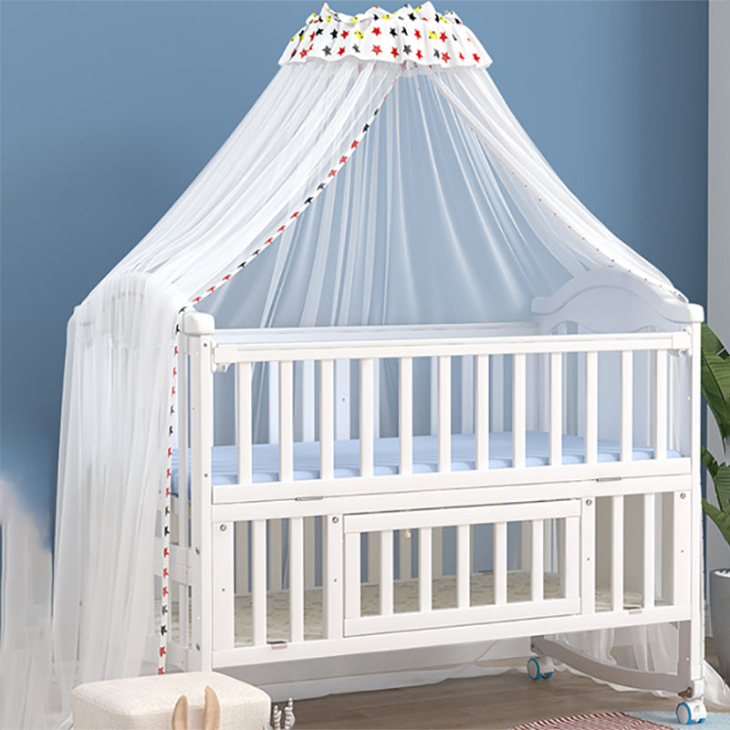 Scandinavian Baby Crib White Wood with Guardrail Nursery Crib