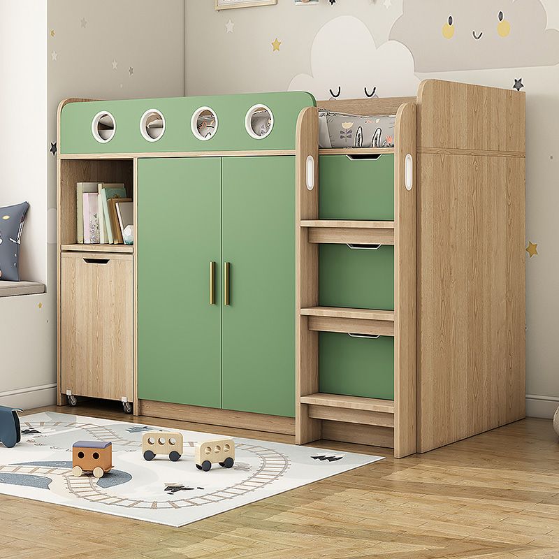 Scandinavian Green and Pink Loft Bed Twin Solid Wood Bed with Guardrail and Desk
