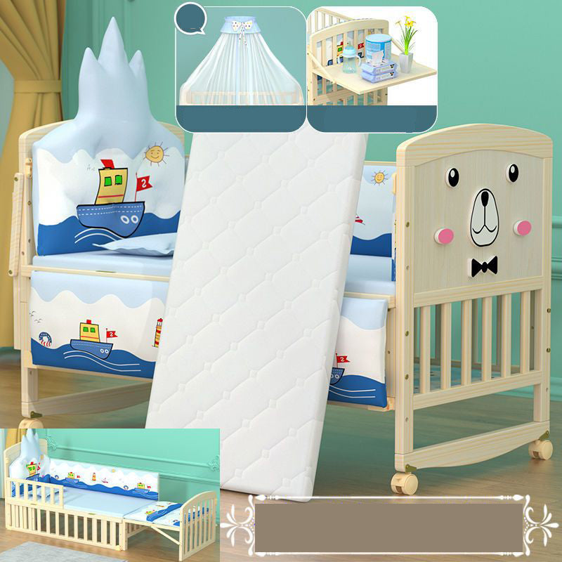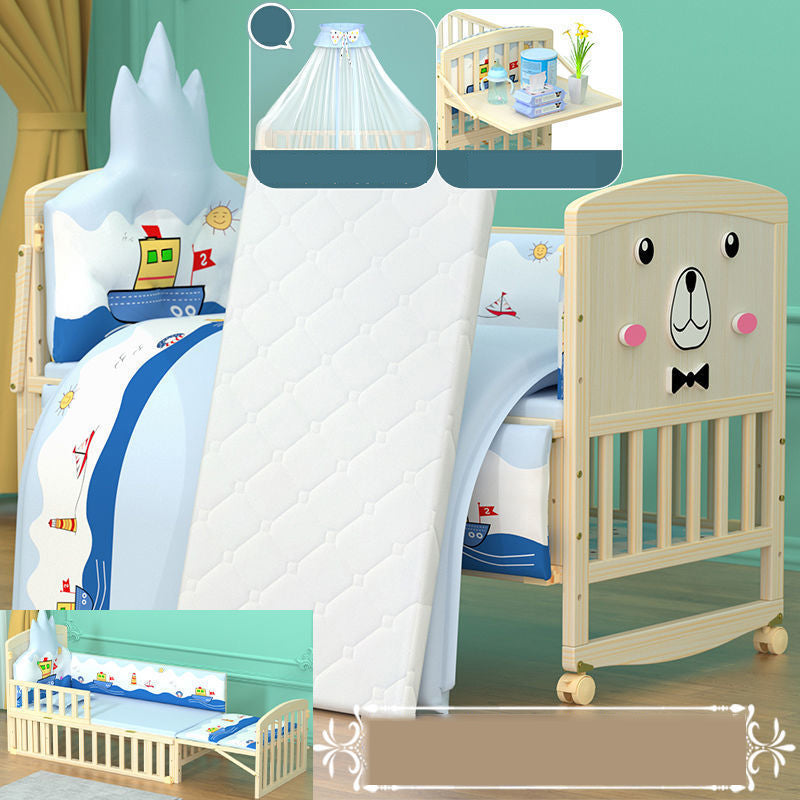 Scandinavian Solid Wood Baby Crib Convertible Nursery Bed with Guardrail