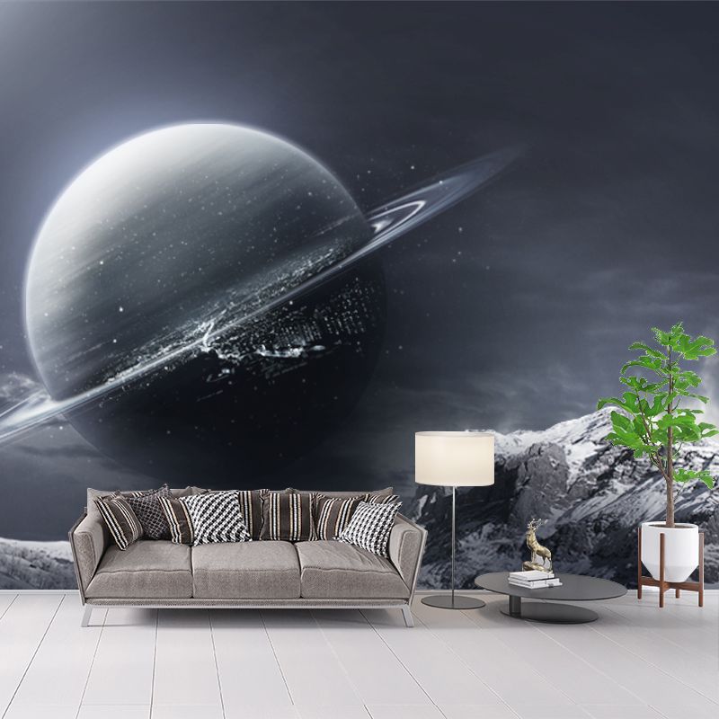 Science Fiction Earth Wallpaper Mural Pewter Snow Mountain Landscape Wall Art for Bedroom