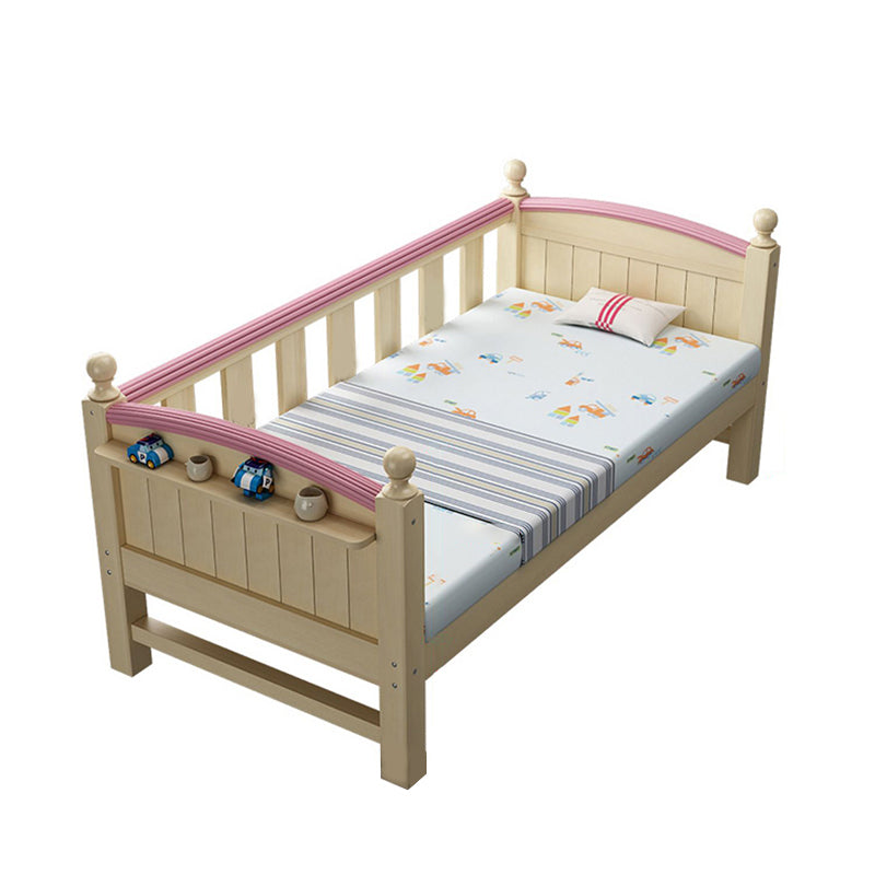 Solid Wood Kids Bed Beech Scandinavian Kids Bed with Guardrail in Natural