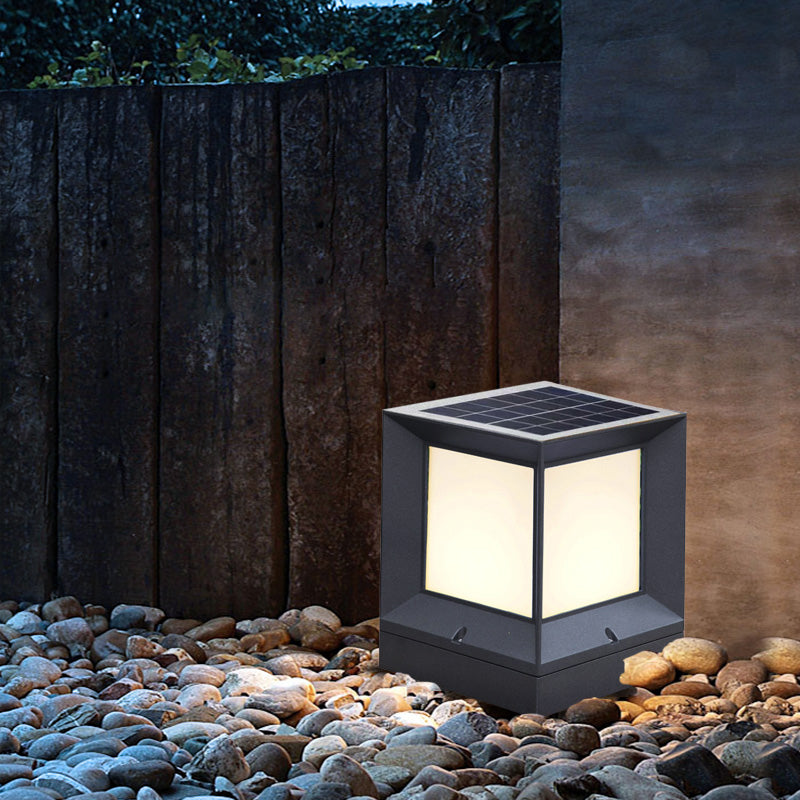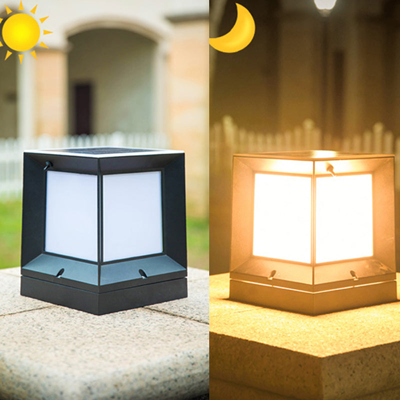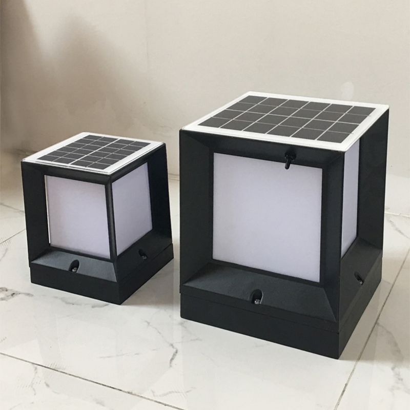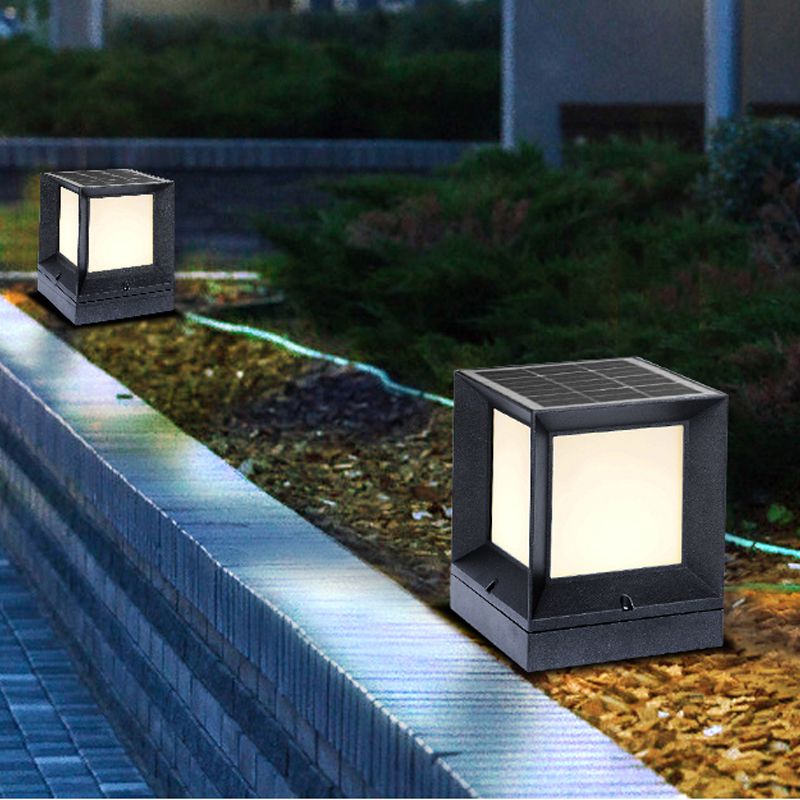 Squared Shade Acrylic LED Pier Mount Light Retro Outdoor Solar Post Lighting in Black