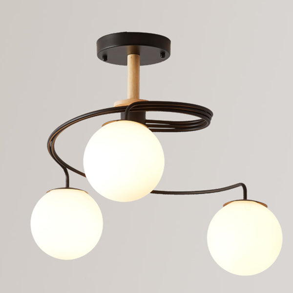 Moderno lampadario artistico a bordo in globe lampadina in ferro laccata con tonalità di vetro bianco