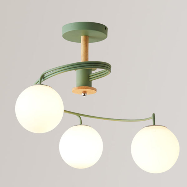 Lampada lampadario moderno a globo moderno in legno multiplo con vetro bianco per soggiorno