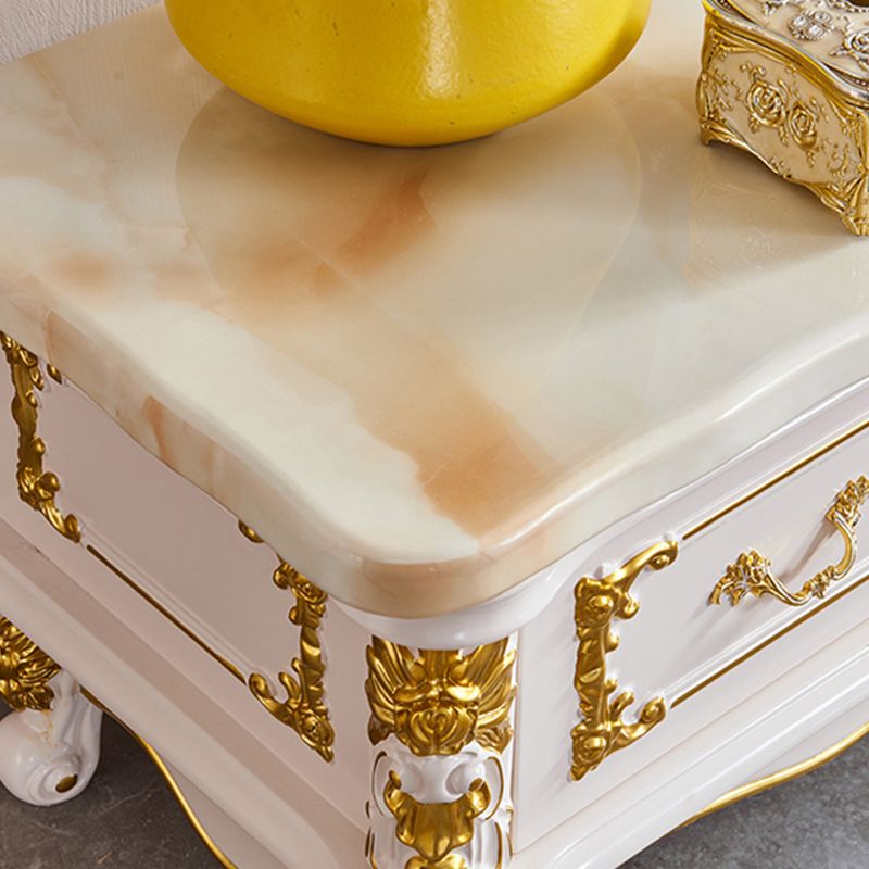 Marble Glam TV Console White 4 Drawers Media Console with Doors