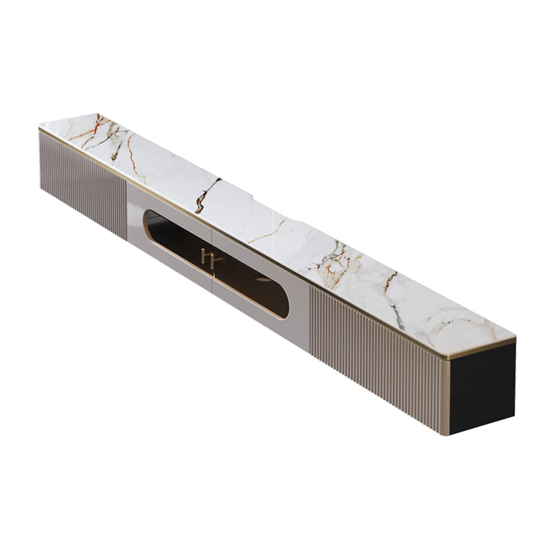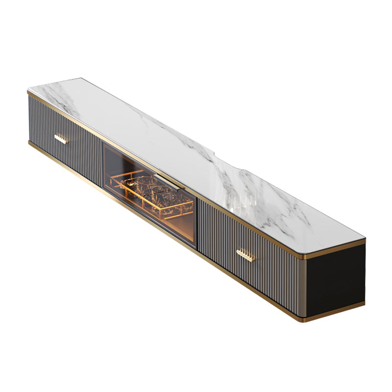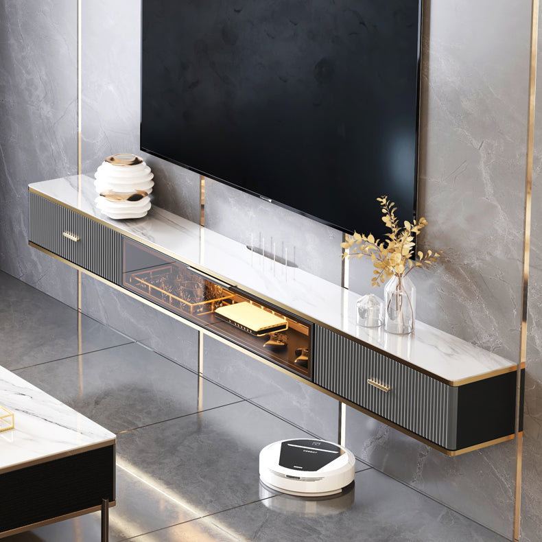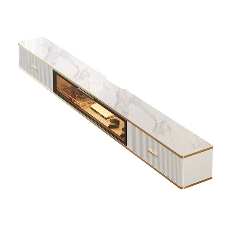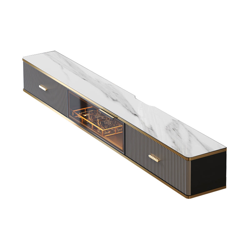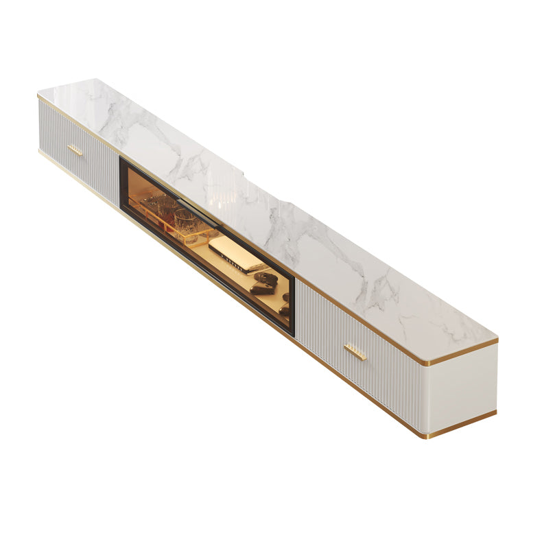 2 Drawers Glam Style TV Stand Stone Wall-mounted TV Cabinet with Door