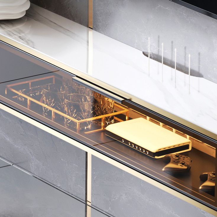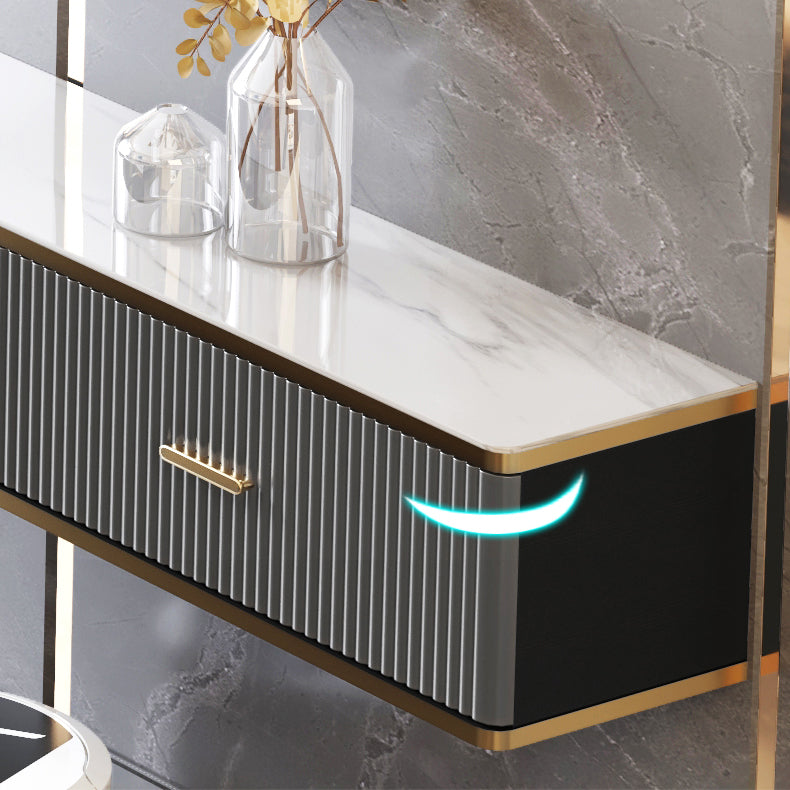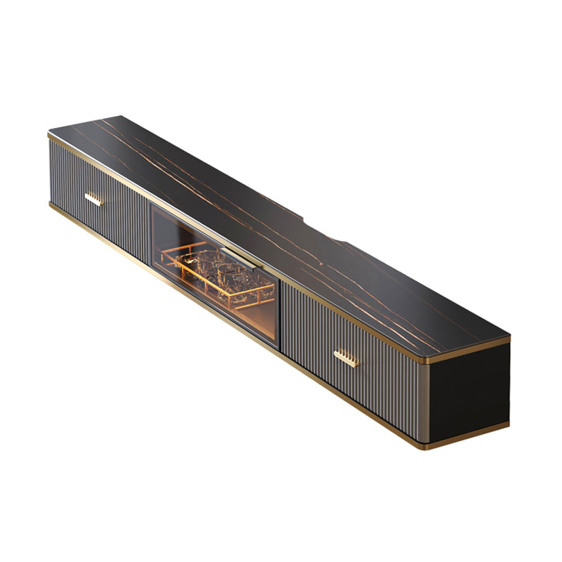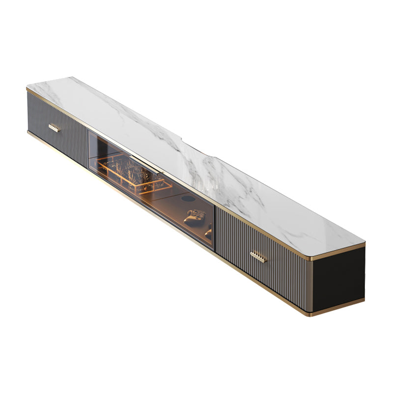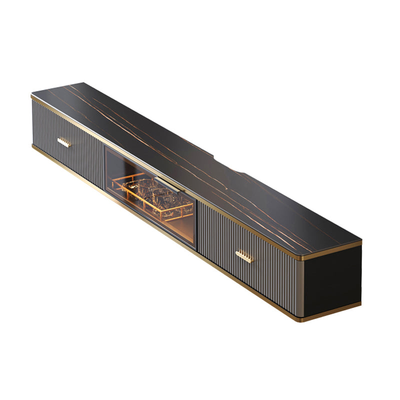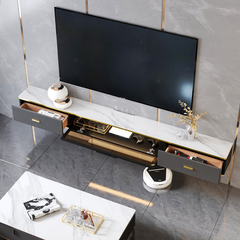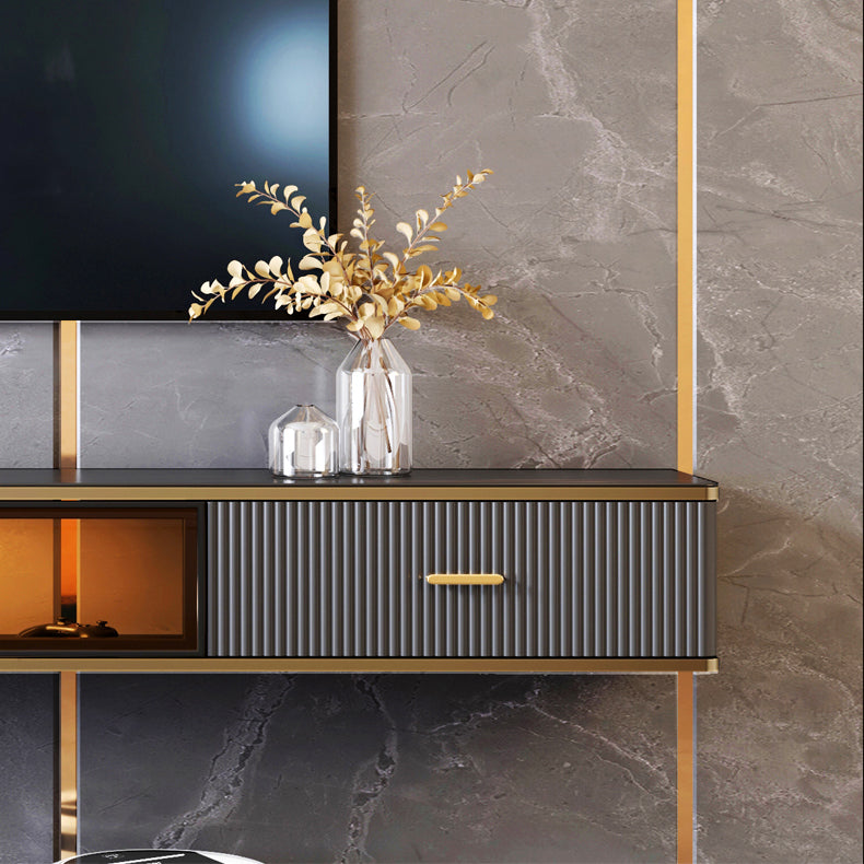 2 Drawers Glam Style TV Stand Stone Wall-mounted TV Cabinet with Door