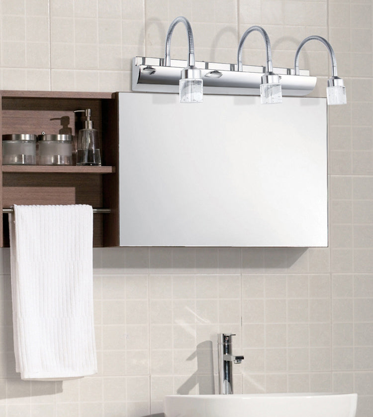 Acciaio inossidabile in acciaio a collo di coccole lampada da vanità con lampada da parete cromata contemporanea con tonalità di cristallo
