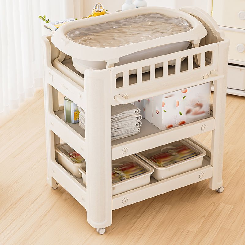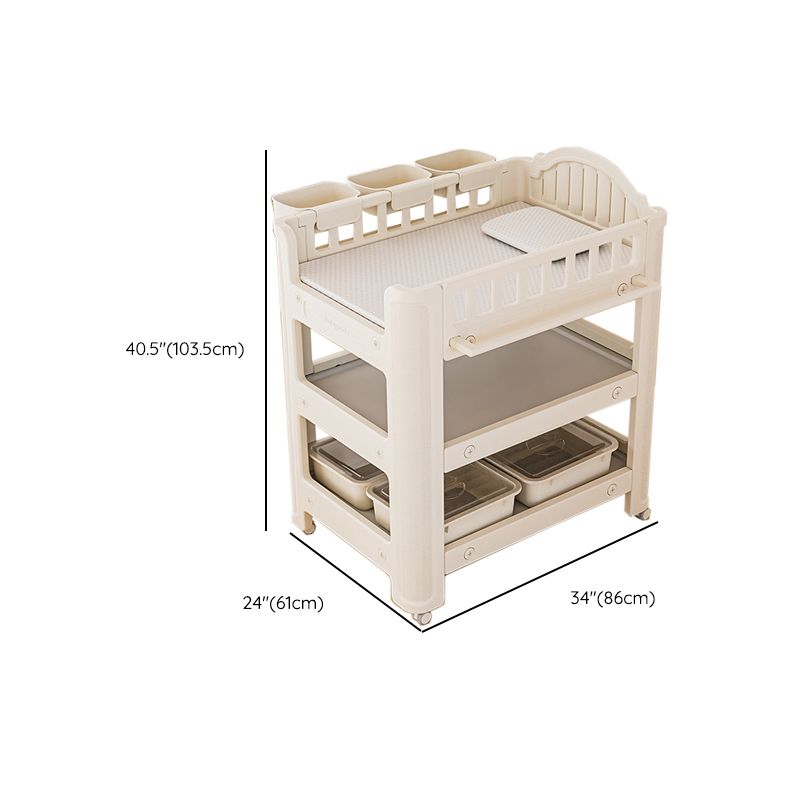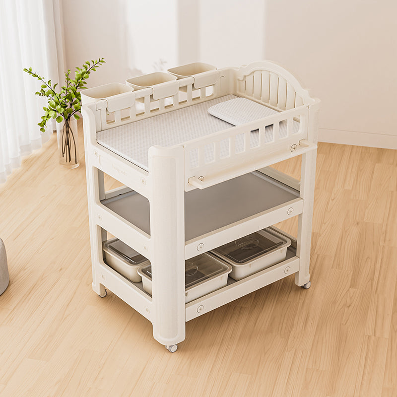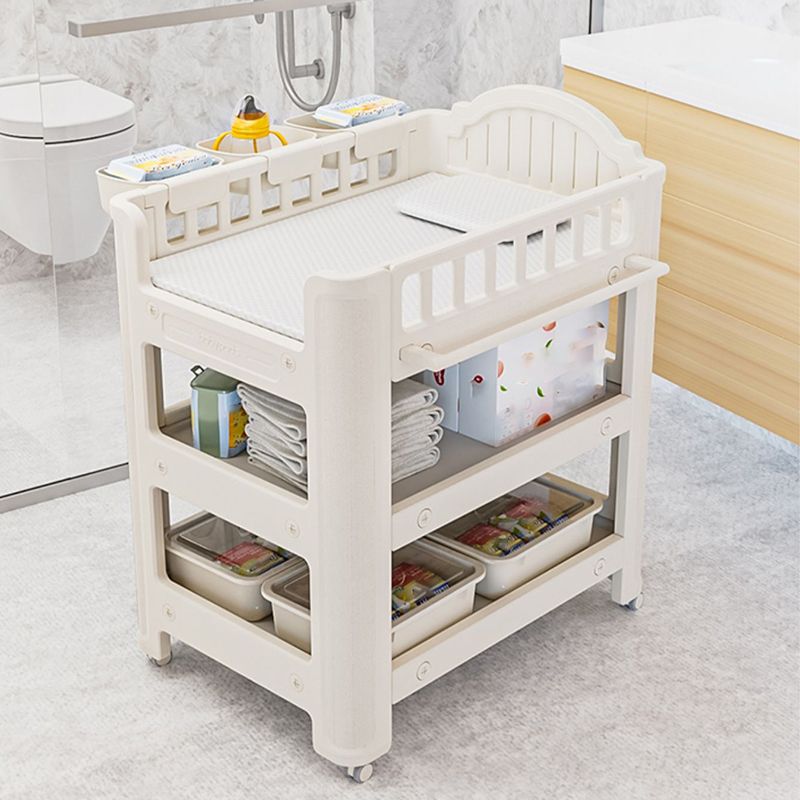 Arch Top White Baby Changing Table with Shelf, Changing Table with Storage