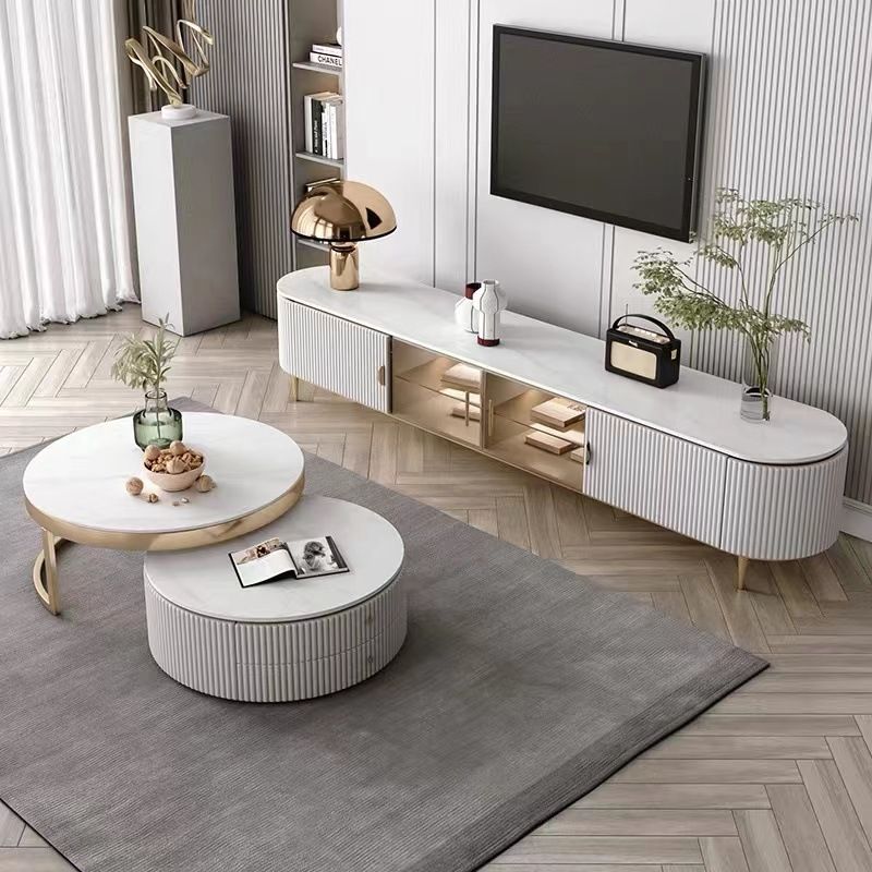 Contemporary Enclosed Storage TV Console Stone TV Stand Console with Legs