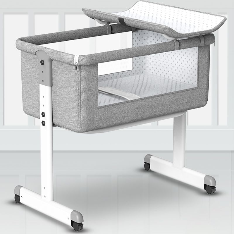 Contemporary Foldable Crib Cradle Metal Bedside Bassinet with 4 Wheels