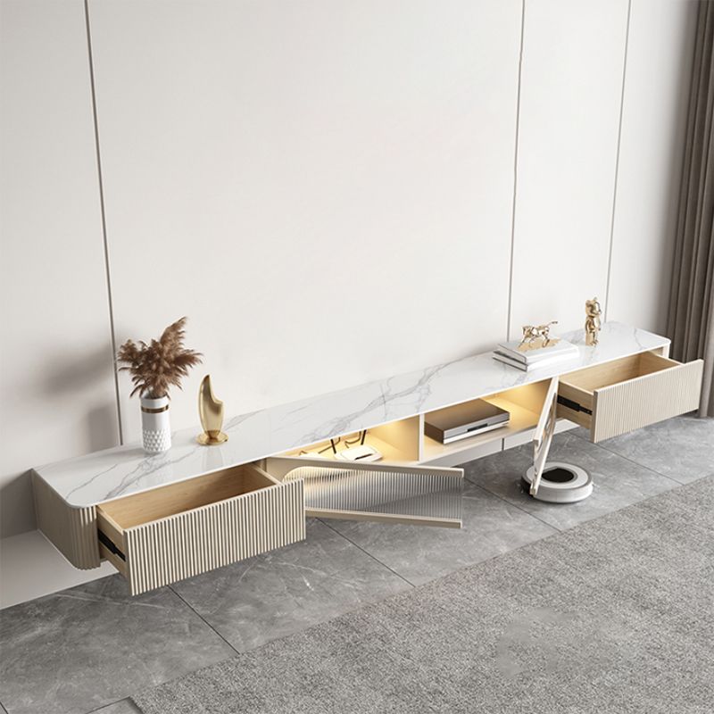 Contemporary Media Console Floating Stone Stand Console with Doors