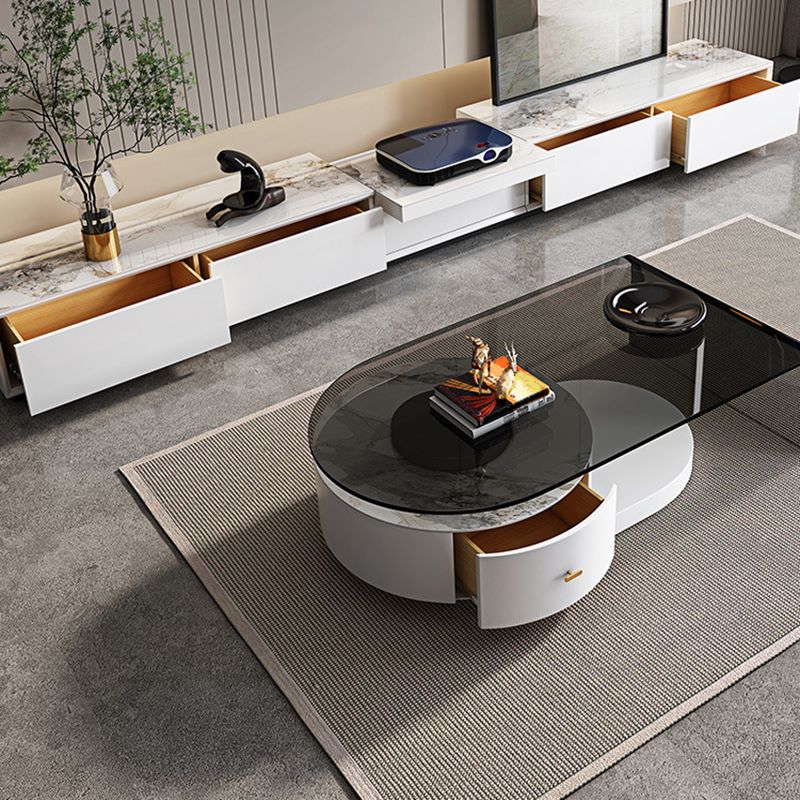 Contemporary Media Console TV Stand Stone TV Stand Console with Drawers
