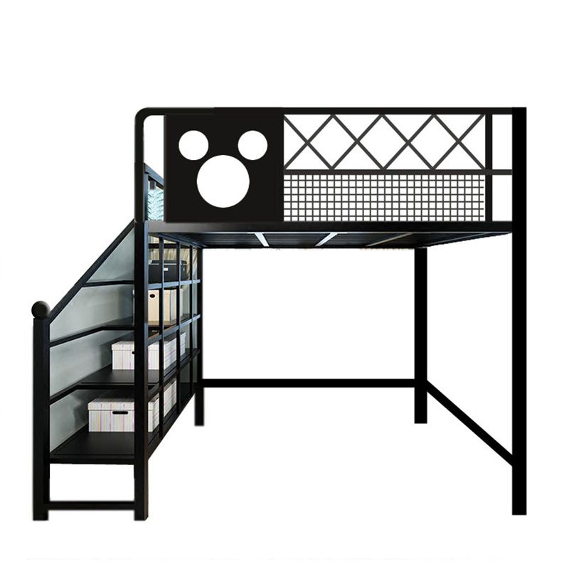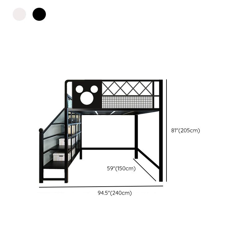 Contemporary Metal Loft Bed White/Black Kids Bed with Headboard and Guardrail