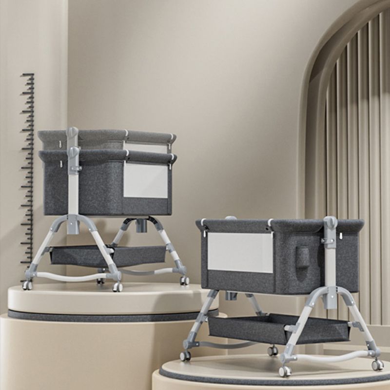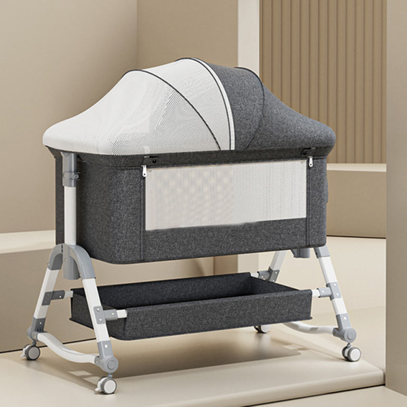 Contemporary Rocking Crib Cradle Height Adjustable Bassinet with Storage Basket
