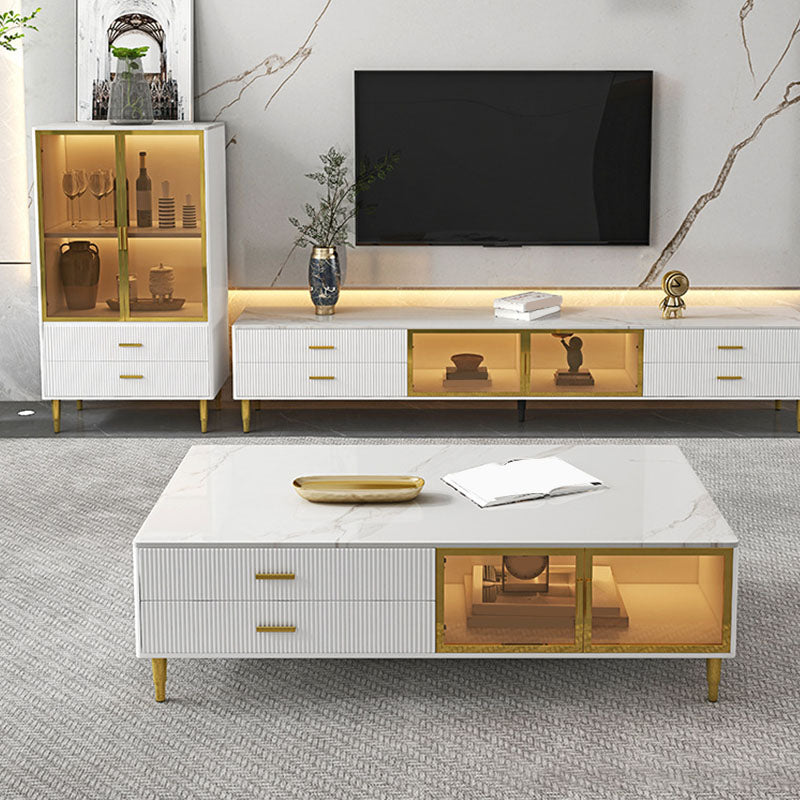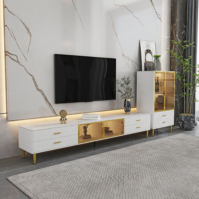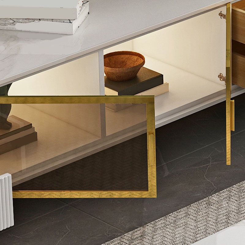 Enclosed Storage Media Console Stone TV Stand Console for Living Room