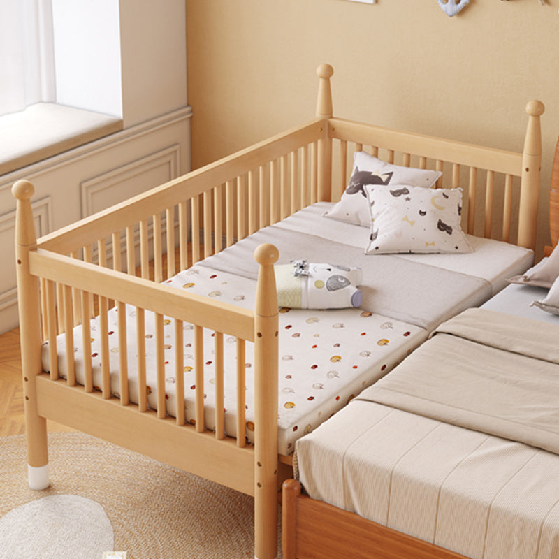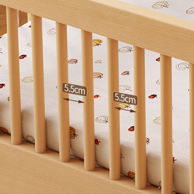Farmhouse Nursery Crib with Adjustable Height in Natural Wood