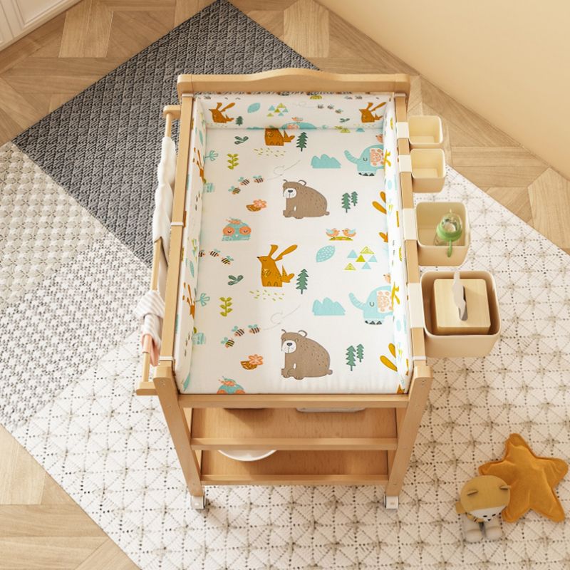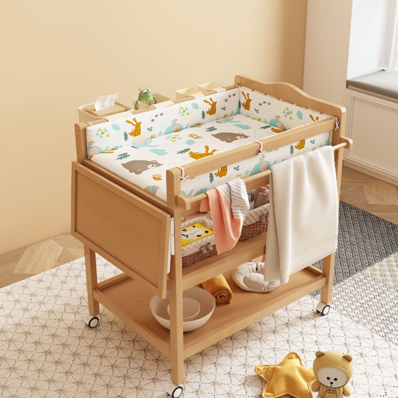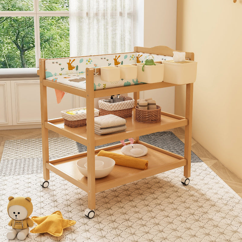 Flat Top Wooden Changing Table with Pad and Shelf Baby 2-in-1 Changing Table with Storage