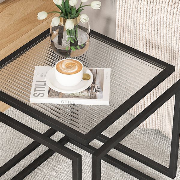 Glam Corner Table Living Room Square Frame Glass Top Accent Side Table