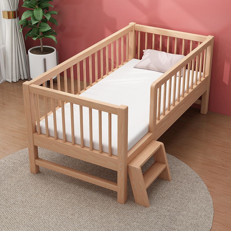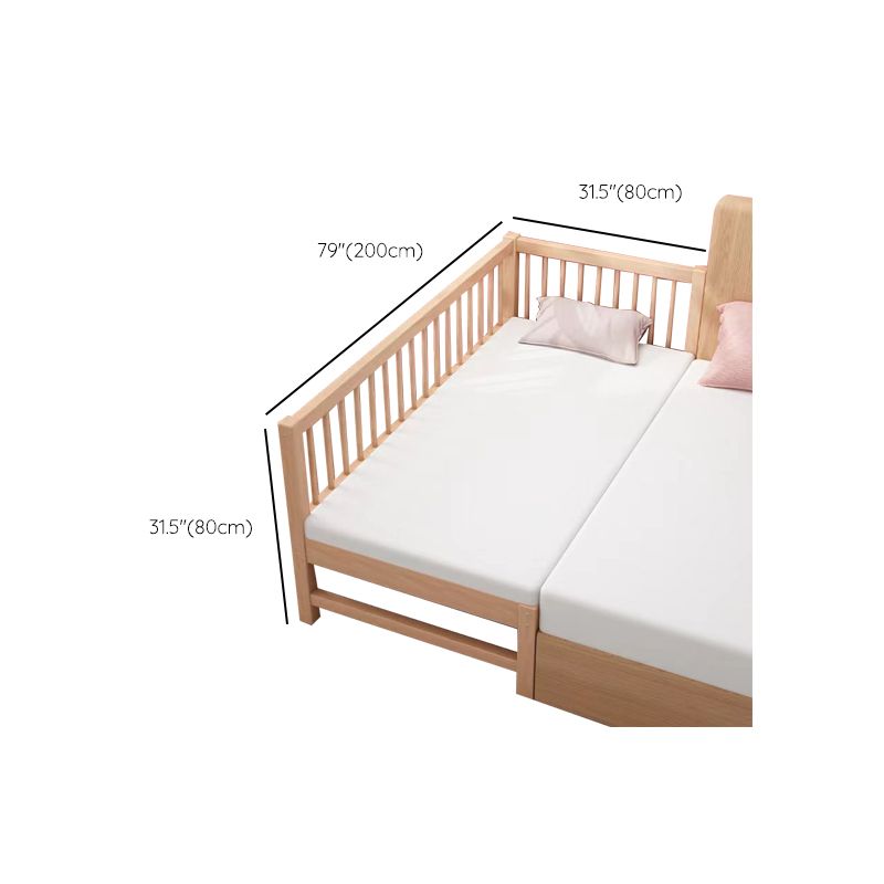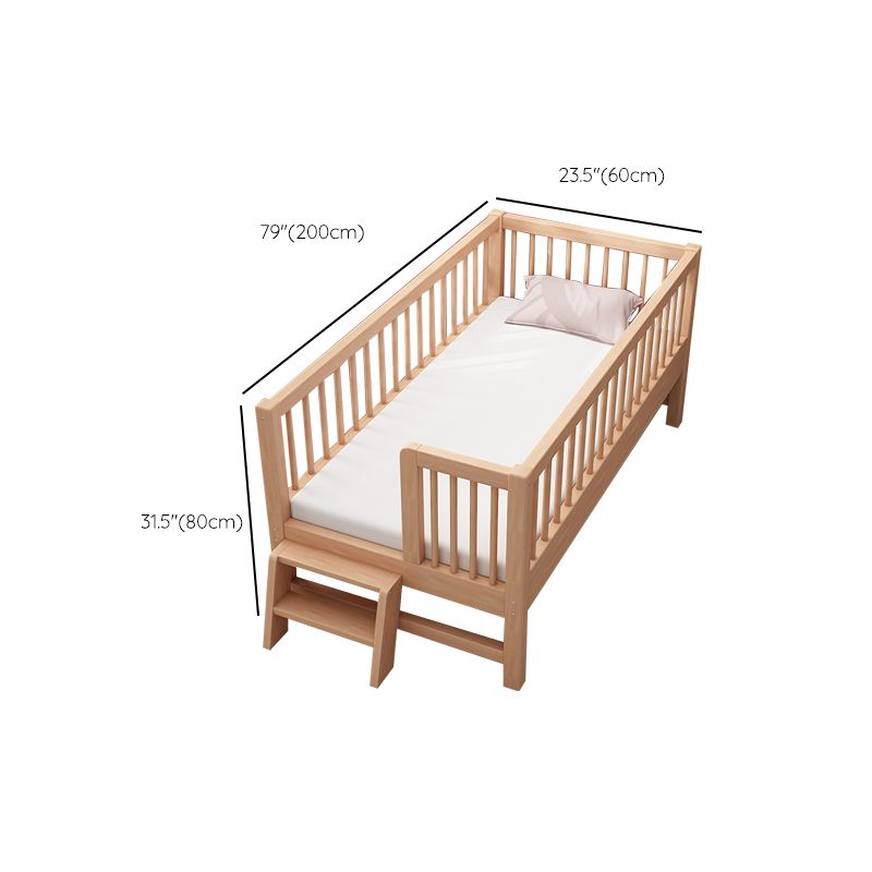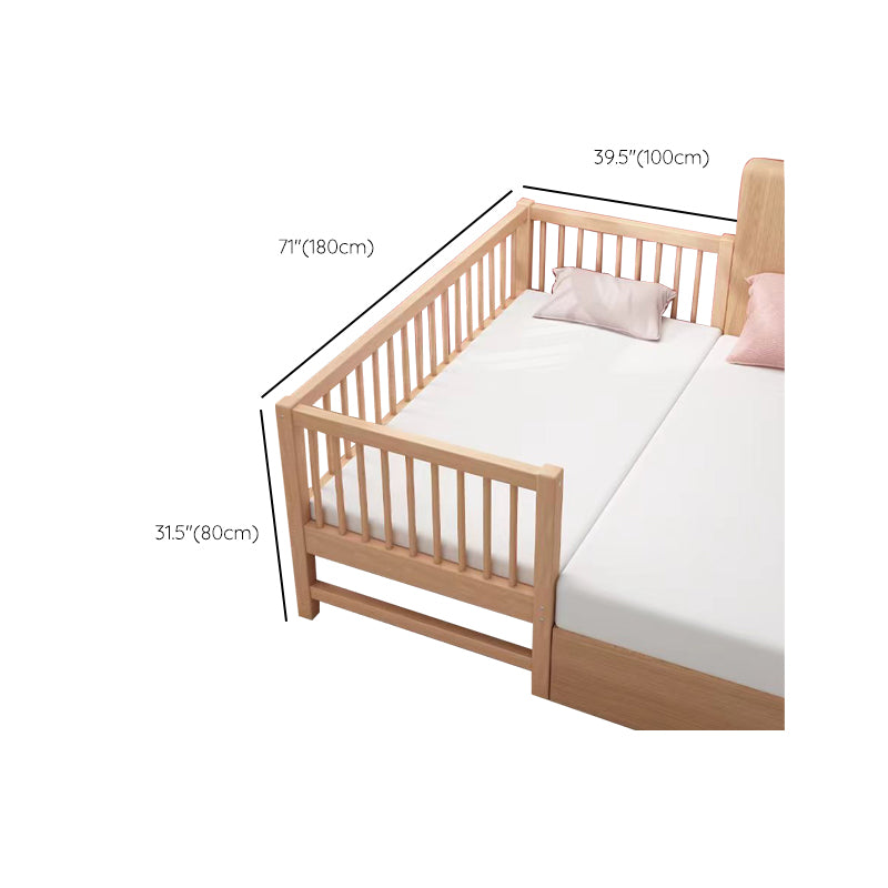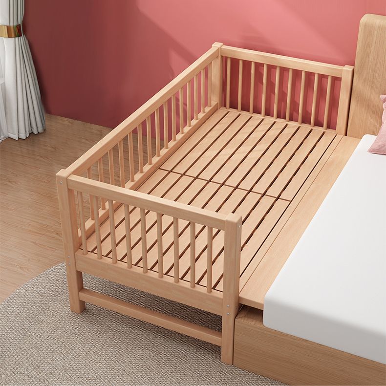 Glam Style Beech Wood Nursery Bed in Nature with Guardrail for Bedroom