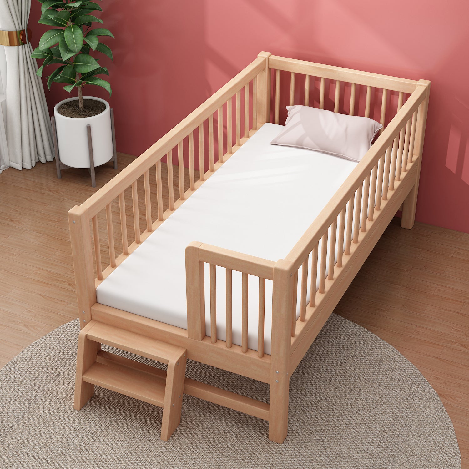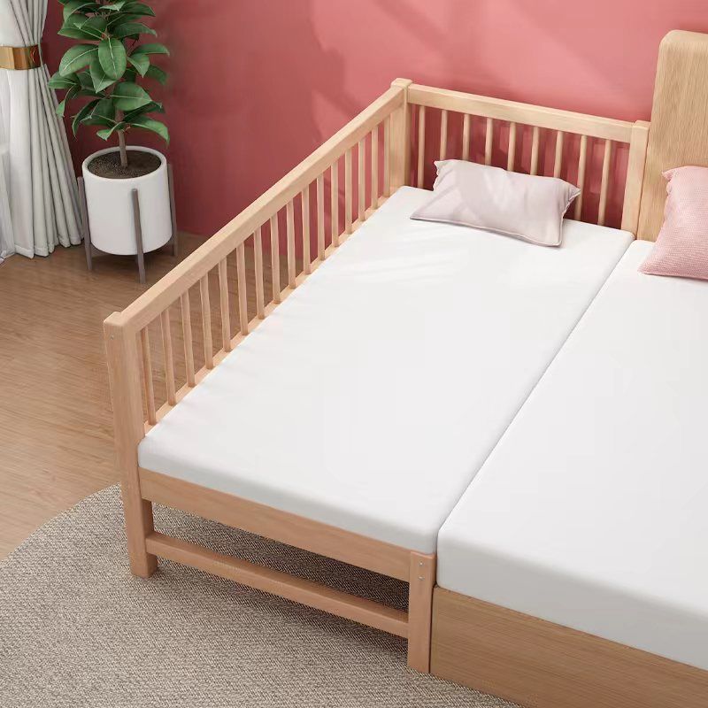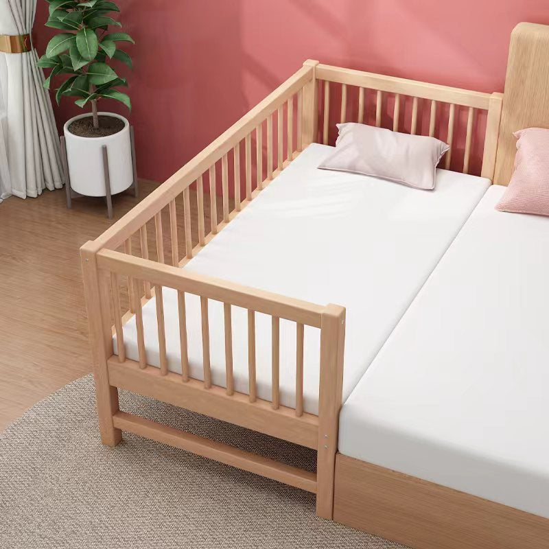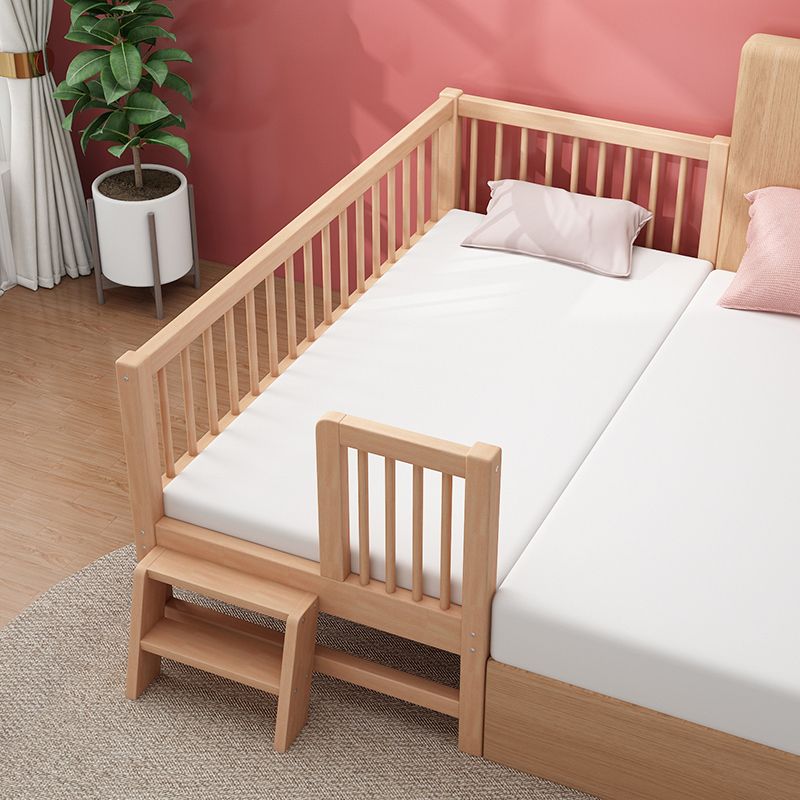 Glam Style Beech Wood Nursery Bed in Nature with Guardrail for Bedroom