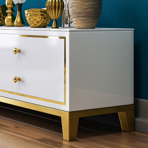 Glass TV Media Stand Open Storage Media Console with 5 Drawers