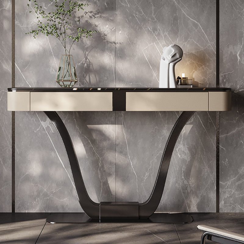 Half Moon Shape Contemporary Console Table Black/White Stone Console Sofa Table