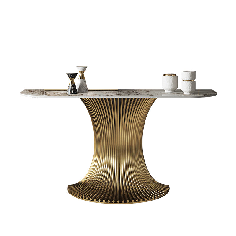 Half Moon Shape Contemporary Console Table in Gold/Silver Stone Console Sofa Table