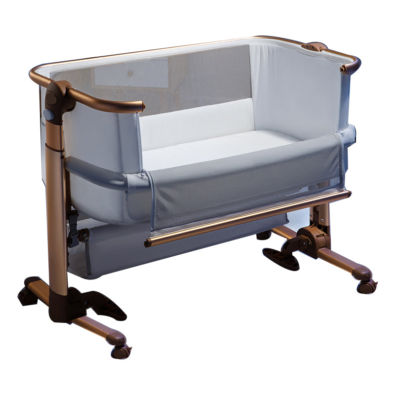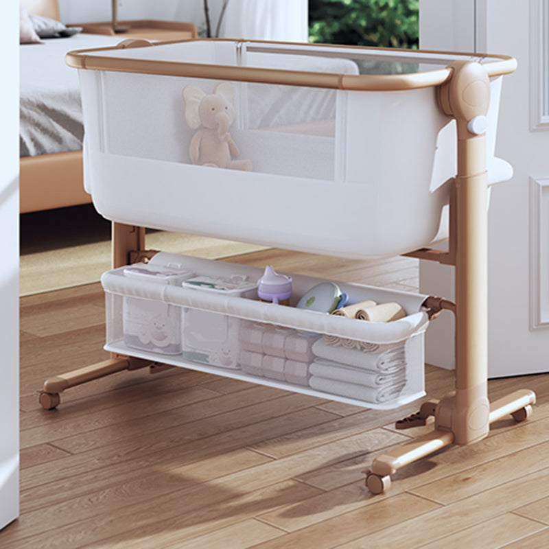 Industrial Metal Frame Nursery Crib with Storage and Guardrail