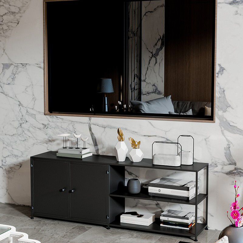 Industrial Metal TV Stand Console Open Storage TV Media Stand for Living Room