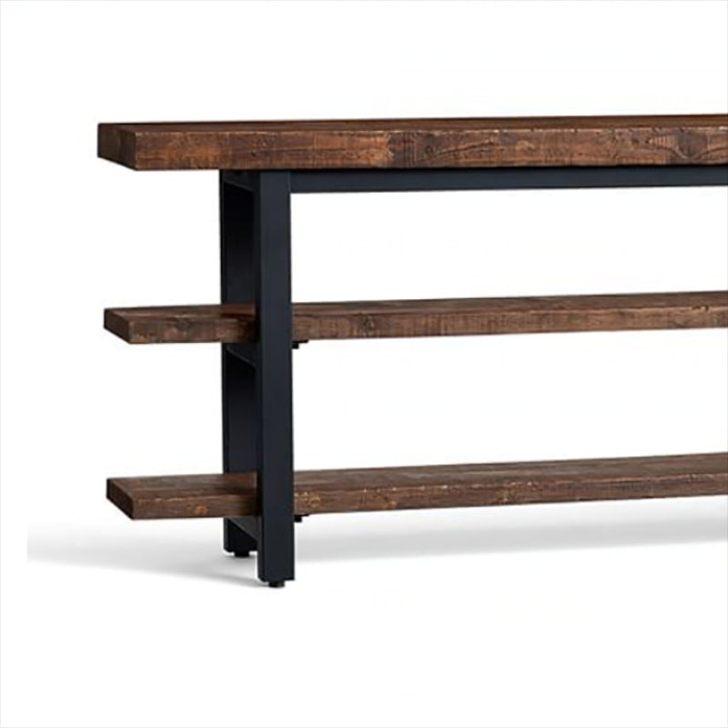 Industrial Pine TV Stand Console Open Storage TV Media Stand with Shelves for Living Room