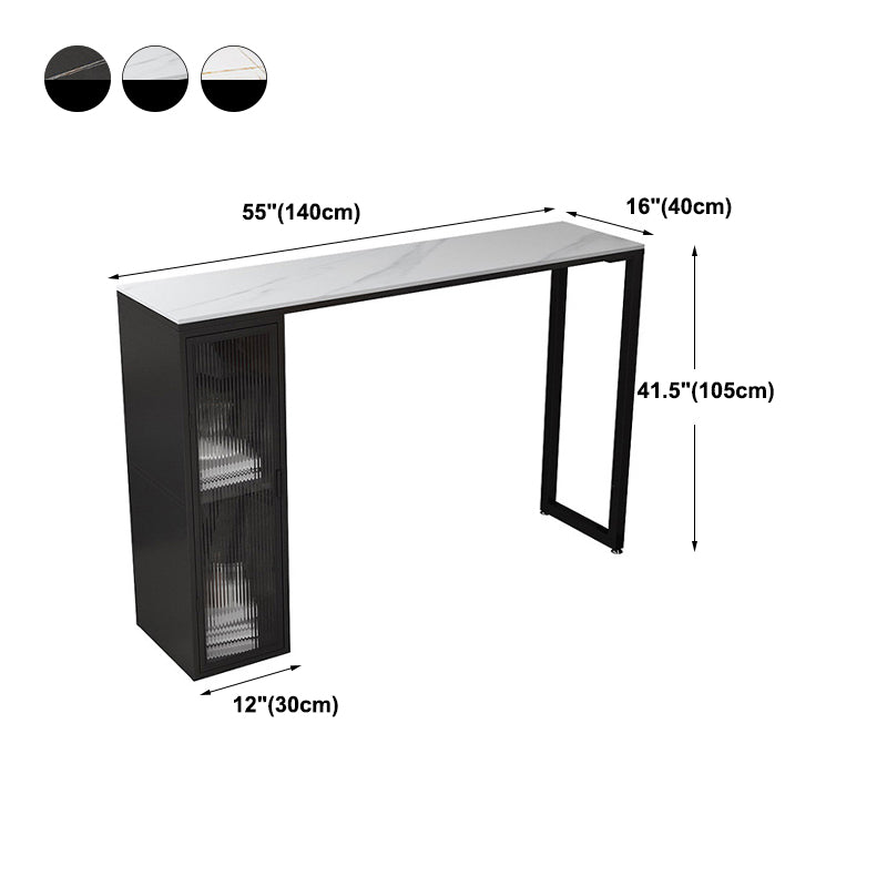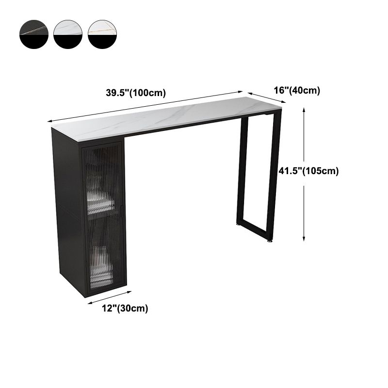 Industrial Style Bar Table Stone Top 42-inch Height Pub Table with Glass Door