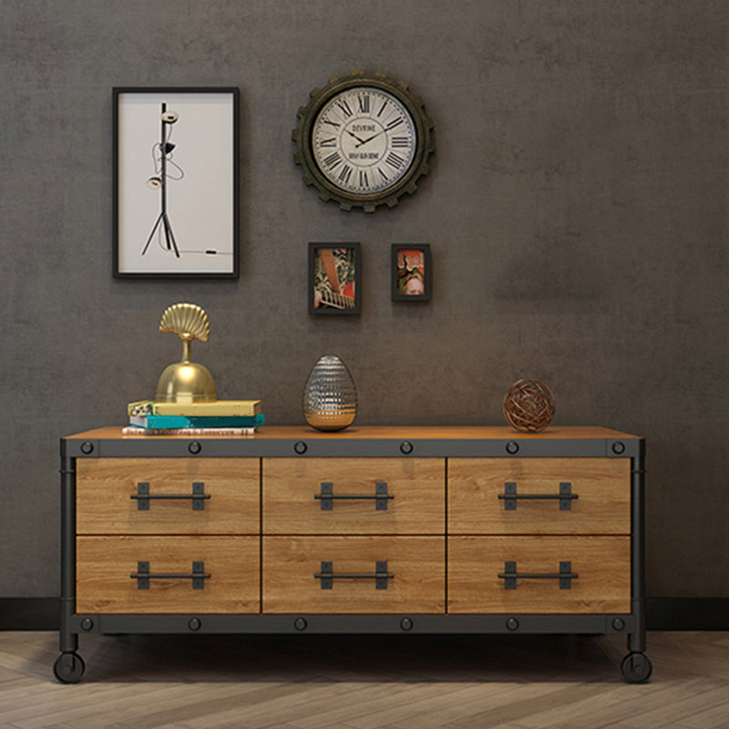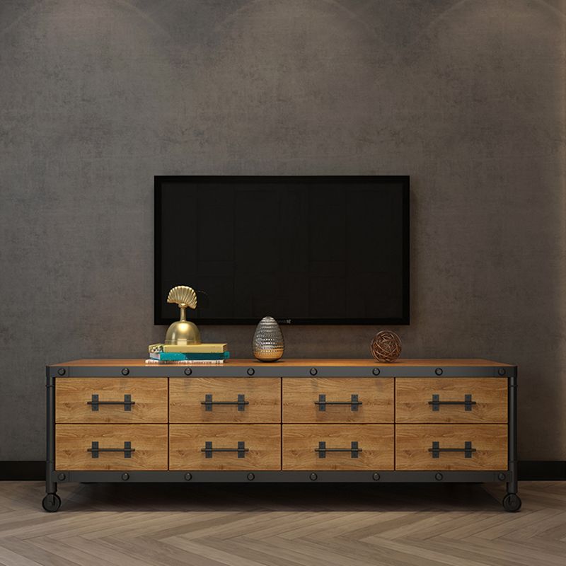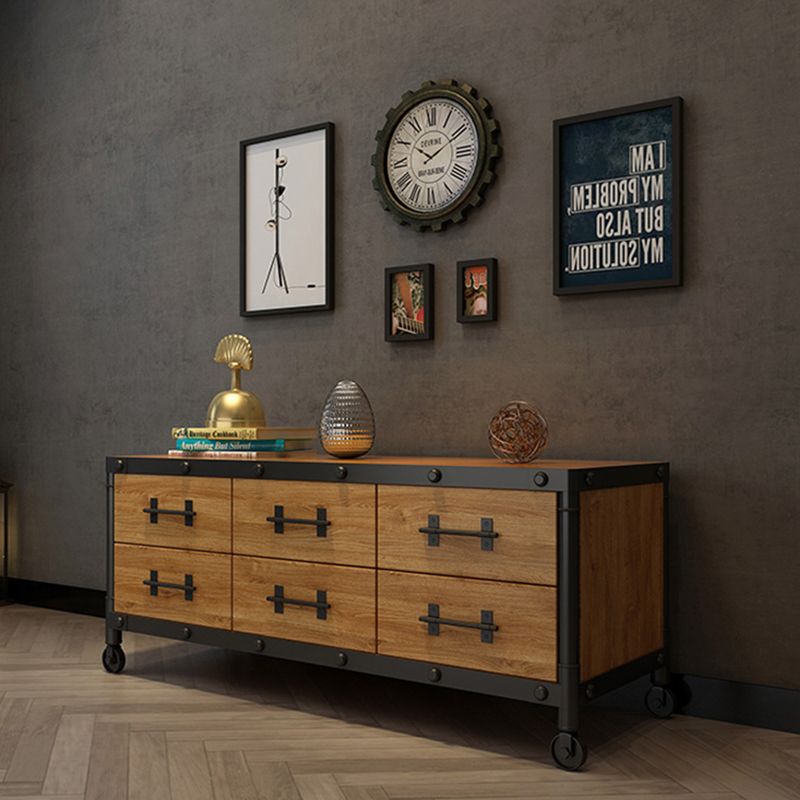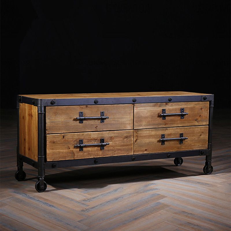 Industrial Wood TV Console Enclosed Storage TV Media Stand with Drawers for Living Room